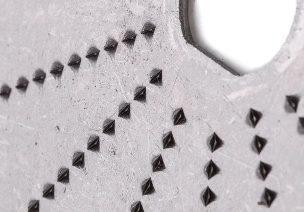 Диск для шинкования/резки имеет две рабочие поверхности. При желании нарезать продукты ломтиками диск устанавливается большим ножом вверх. При необходимости измельчить продукт соломкой диск необходимо установить мелкими ножками вверх.
