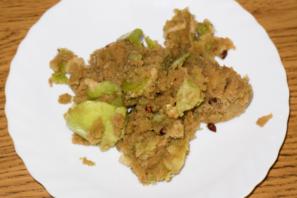 Яблоки были вымыты и порезаны на четыре части. Ни косточки, ни шкурка не удалялись. Позже, уже при эксплуатации прибора, стало понятно, что некрупные яблоки можно было бы нарезать просто пополам, они прекрасно входили в загрузочное отверстие.
