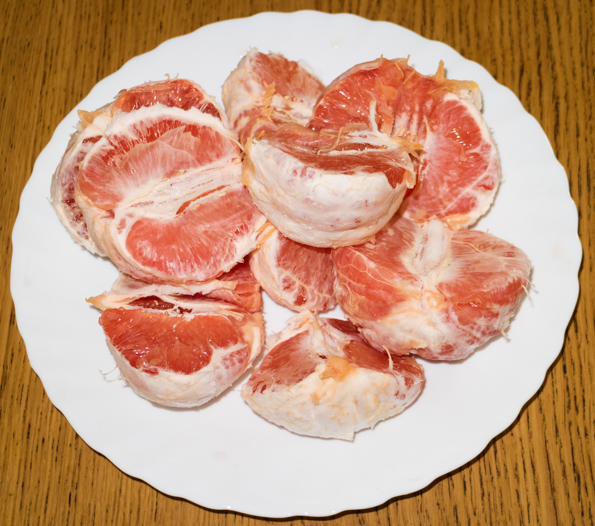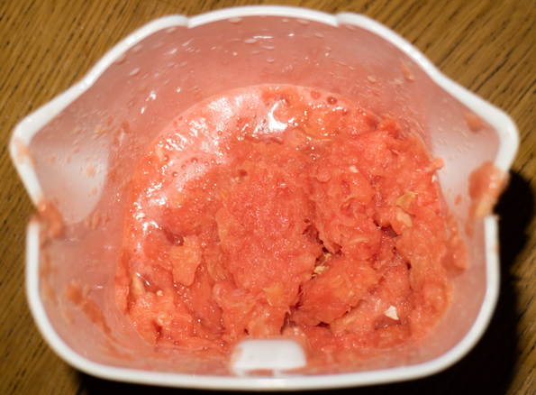 Как известно, центробежные соковыжималки — не лучший вариант для отжима сока из цитрусовых. Тем не менее, Аксион СЦ 32.02 удовлетворительно справился и с этим тестом. Грейпфруты были очищены от шкуры, затем разломаны на две части (мы не устанем петь дифирамбы размеру сопла для закладки продуктов).