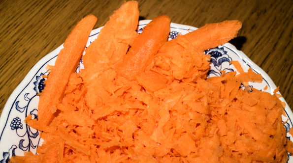 Морковь была вымыта и очищена. Ни нарезать, ни как-либо измельчать ее нам не пришлось. Красота!