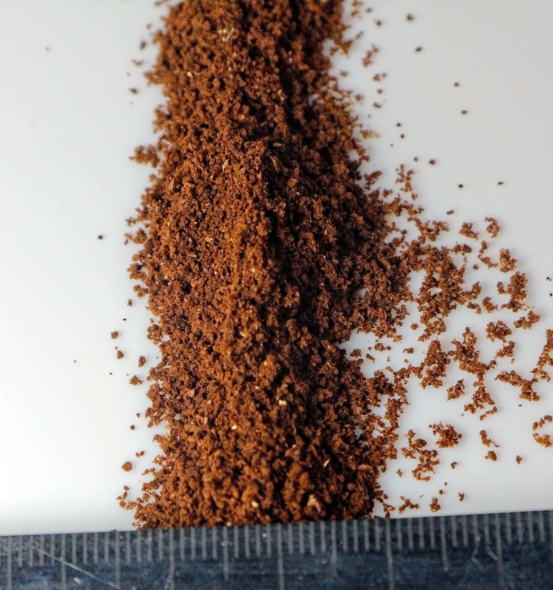 Результат нас порадовал (или, другими словами, оказался именно тем, который мы и ожидали). Кофемолка позволяет довольно точно настроить помол и уверенно «держит» его, выдавая стабильный результат (с незначительным количеством вкраплений большего, чем нужно, размера).