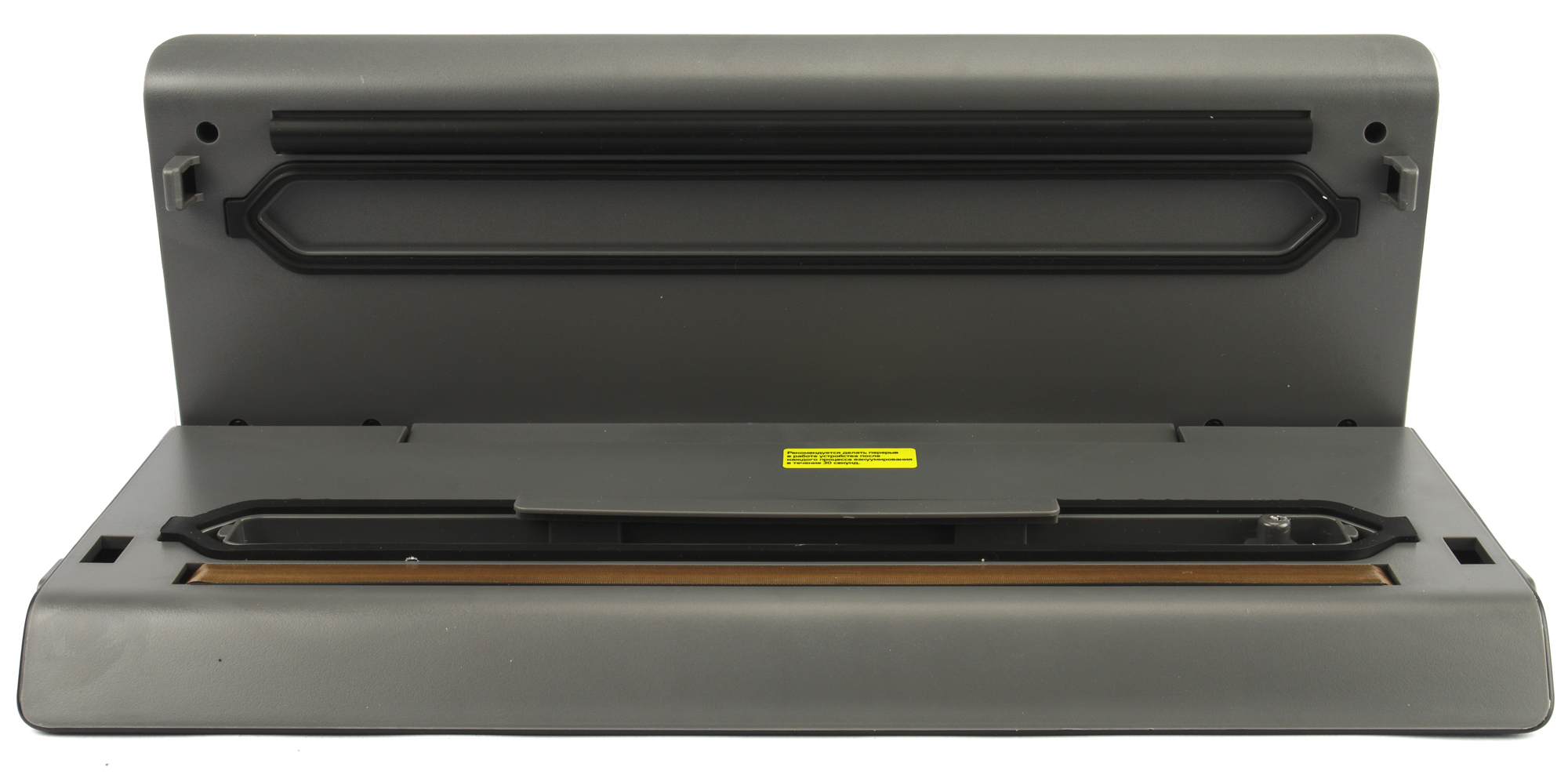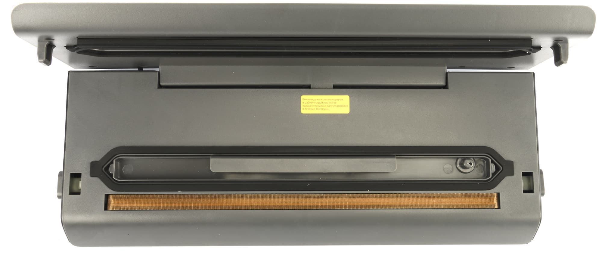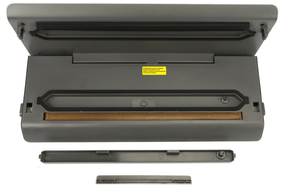 На поверхности откидной панели можно увидеть прижимной валик и уплотнители, расположенные по периметру вакуумной камеры.