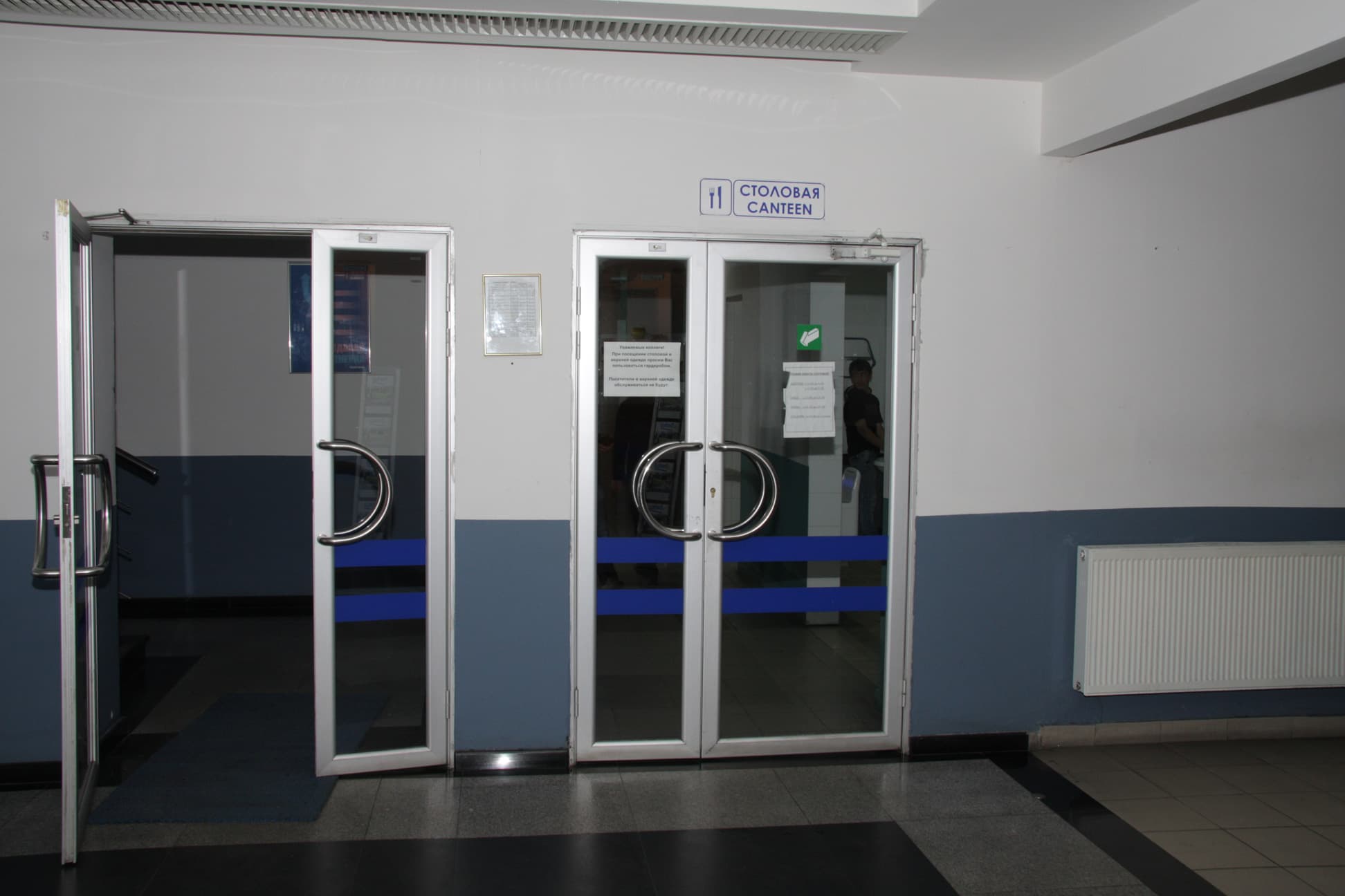 Столовая, в которой бесплатно кормят сотрудников завода, чистая и светлая.