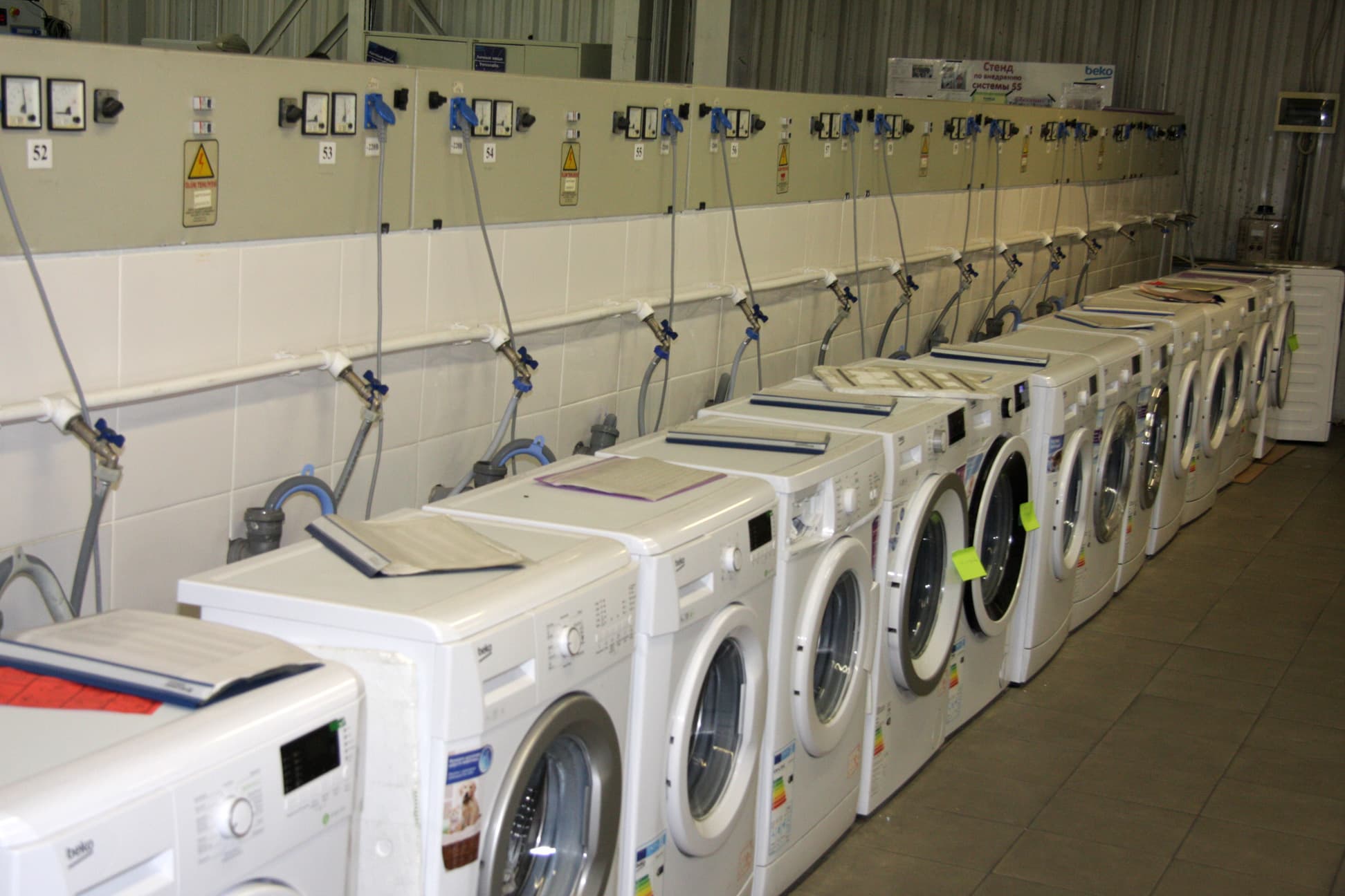 Со стиральными машинками все немного сложнее, поэтому в специальной лаборатории несколько машин из партии подвергаются тщательному тестированию на специальных стендах.