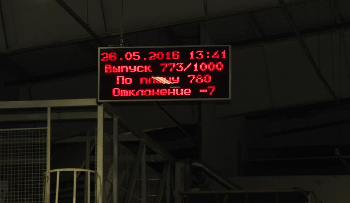 Вспоминается про морковку, которая всегда должна быть впереди, поэтому не вызывает удивление, что на всех мониторах указывалось на отставание от плана в той или иной степени. В случае цехов, меньше привязанных к скорости работы персонала, демонстрируемым качеством работы служит количество дней без простоев по вине этого цеха.