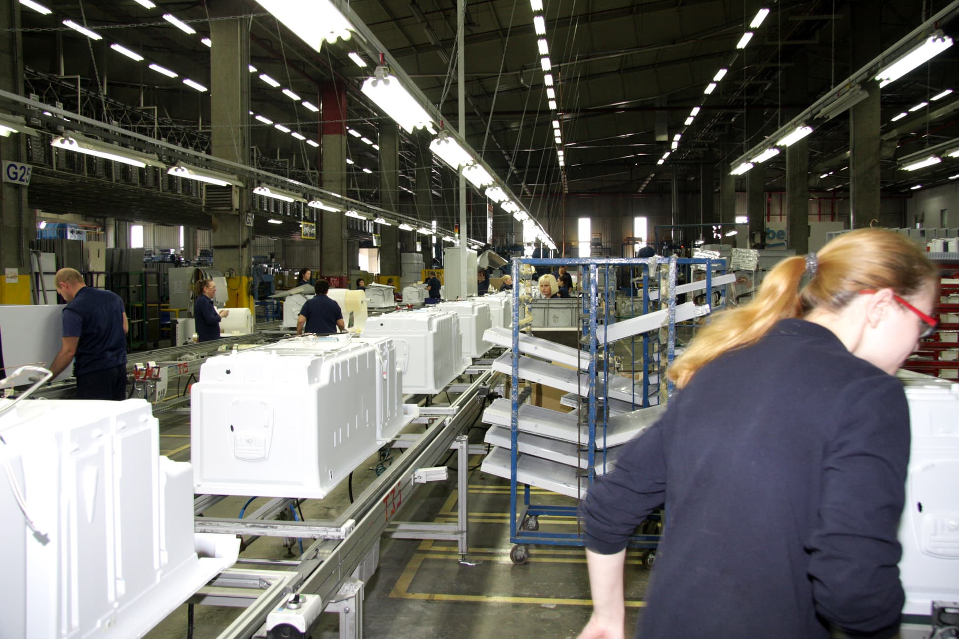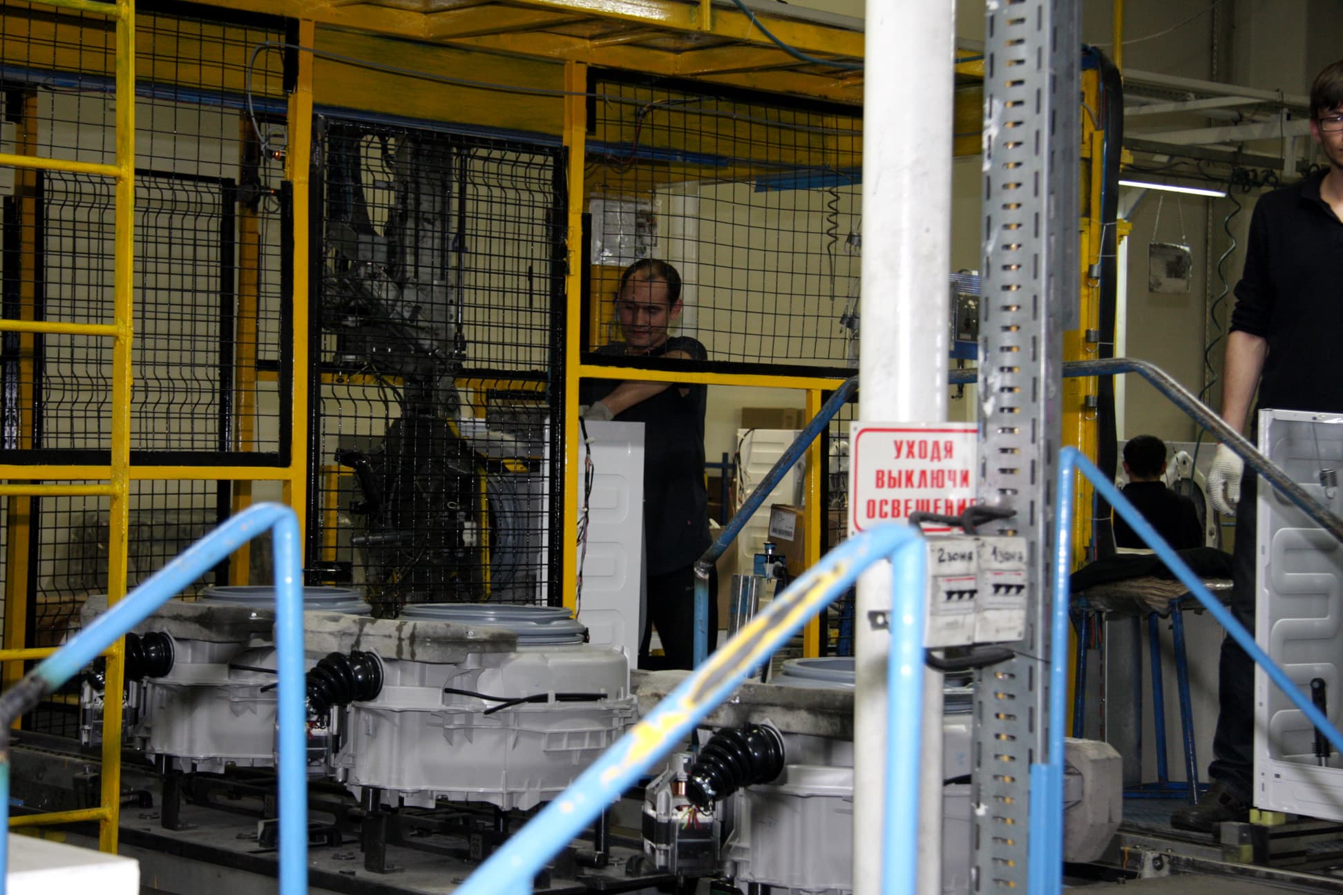 Далее — подборка фотографий с конвейеров по сборке холодильников, стиральных машин и из цеха по производству пластмассовых деталей.