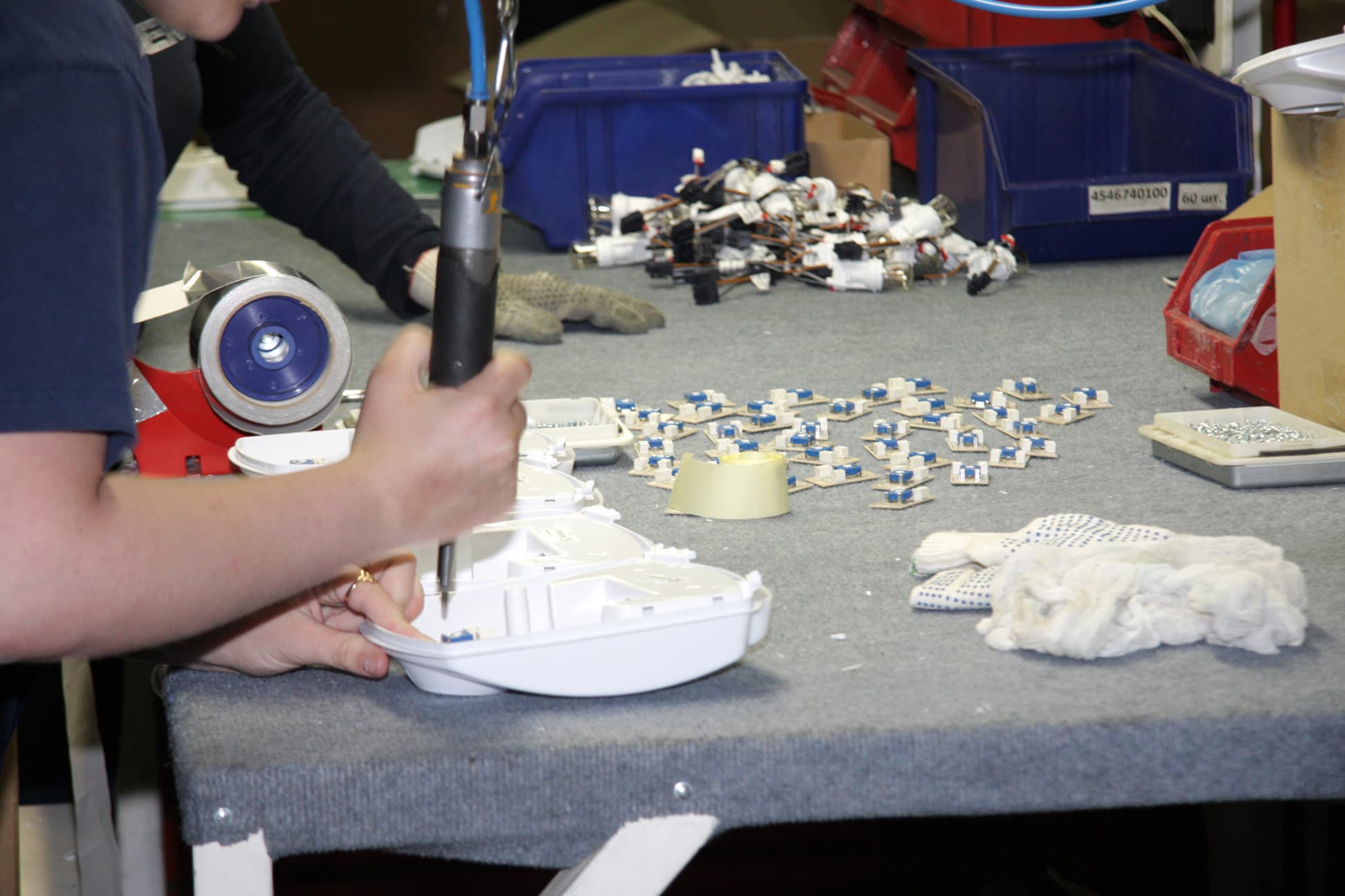Первичная оснастка корпусов происходит на встречном конвейере.
