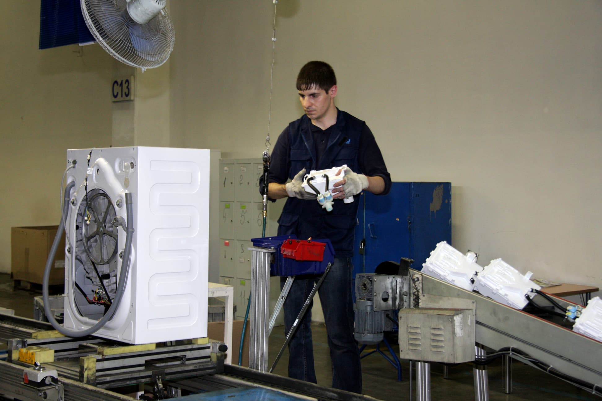 Все остальное — корпуса, пластиковые детали, барабаны стиральных машин и т. д. — изготавливаются тут же из исходного сырья, например, из пластика в гранулах и металлопроката.