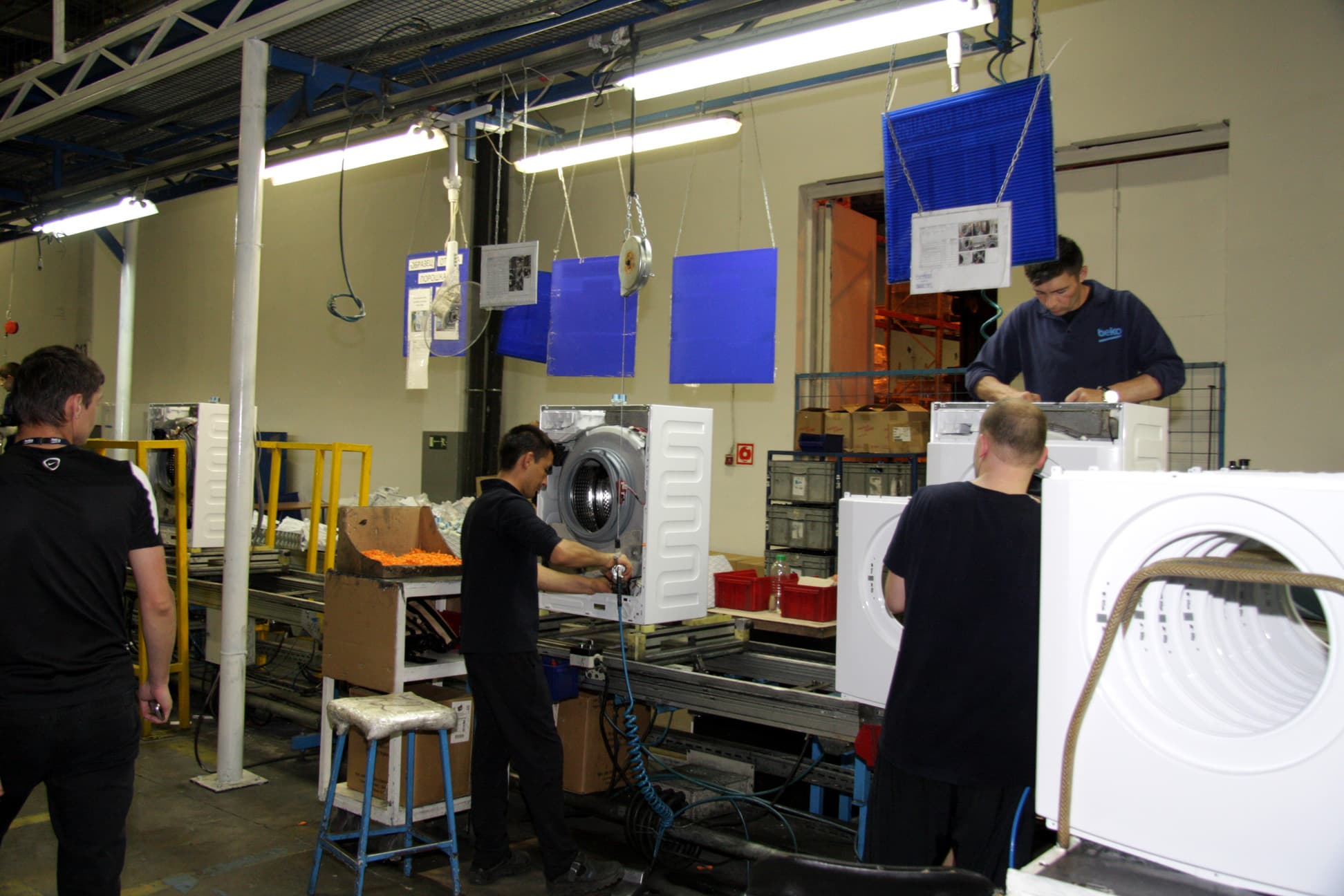На заводе нас провели по конвейерам для сборки холодильников и стиральных машин, также мы заглянули в цех по производству пластмассовых деталей. Удивляет, насколько велика часть того в составе конечной продукции, что изготавливается непосредственно на данном заводе Беко. Совсем небольшое количество компонентов, например, электрическая арматура и электроника, компрессоры и электродвигатели, поставляются на завод в готовом виде.