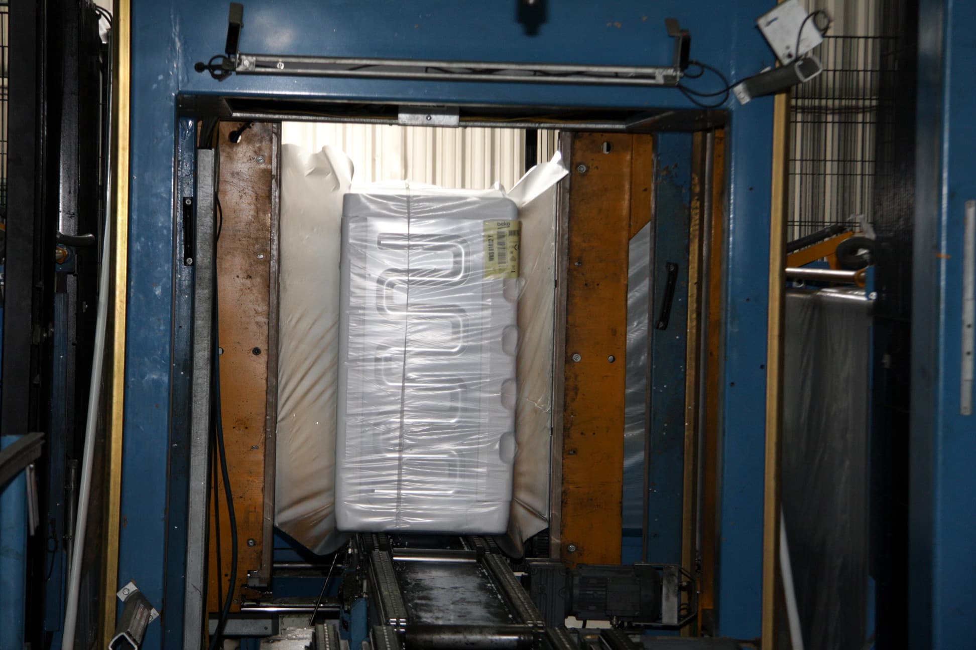 Где обкладывается защитными пенопластовыми вставками, оборачивается в термоусадочную пленку.