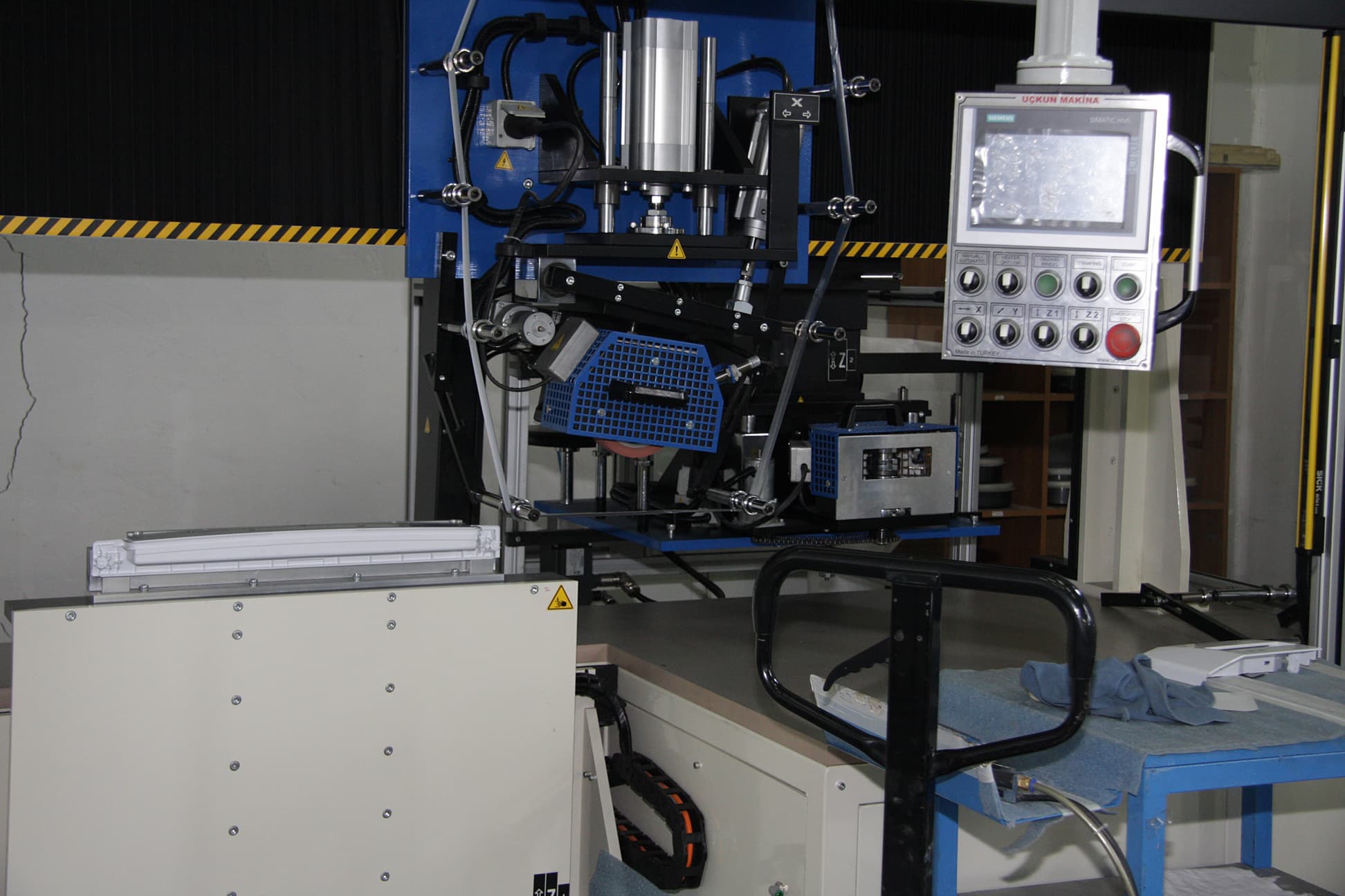 Далее готовые детали подхватываются манипуляторами и перекладываются на транспортную ленту.