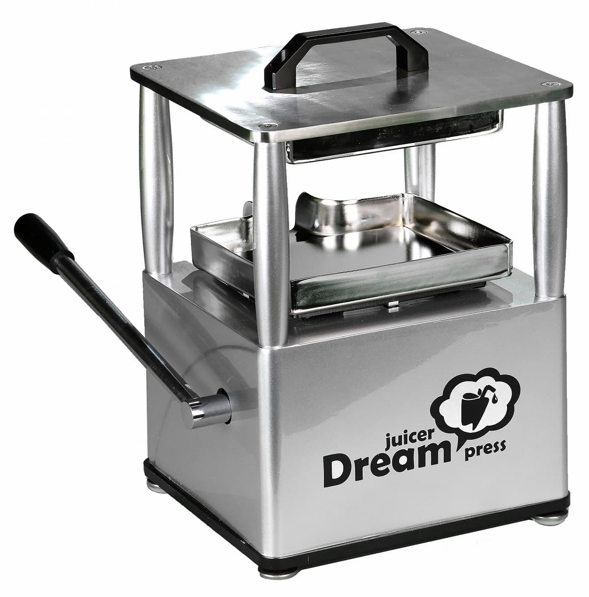 Самая необычная соковыжималка из тех, которые попадали в нашу тестовую лабораторию — это ручной пресс для сока Rawmid JDP-01. Данный прибор, позиционирующийся в качестве соковыжималки для веганов и любителей здоровой пищи, отжимает сок, сдавливая предварительно подготовленное сырье с помощью гидравлической системы.