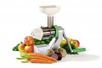 Конечно, о серьезной производительности в данном случае говорить не приходится — ведь ручку прибора придется крутить самостоятельно. А вот по качеству и эффективности отжима данный прибор оказался весьма неплох. Так что любители веганского образа жизни и сыроедения могут обеспечить себя свежими соками и домашней лапшой даже в какой-нибудь землянке вдали от цивилизации.
