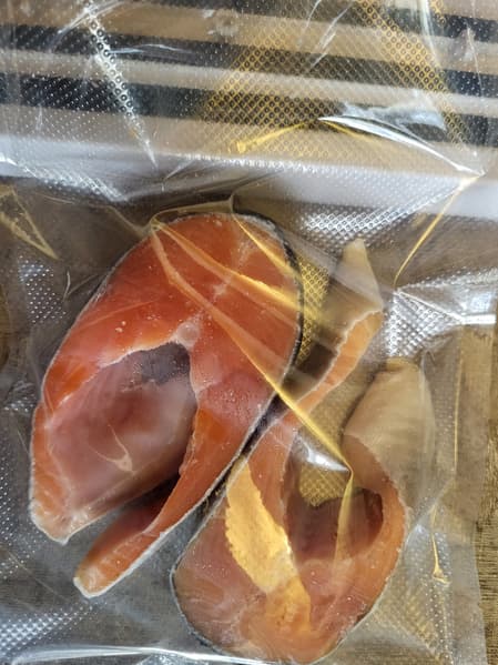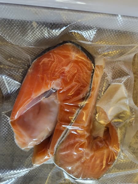 После вакуумирования оба пакета поместили в наполненную водой чашу мультиварки, выставив режим 60 °C и время приготовления 7 часов.