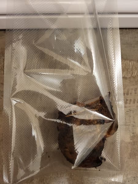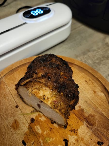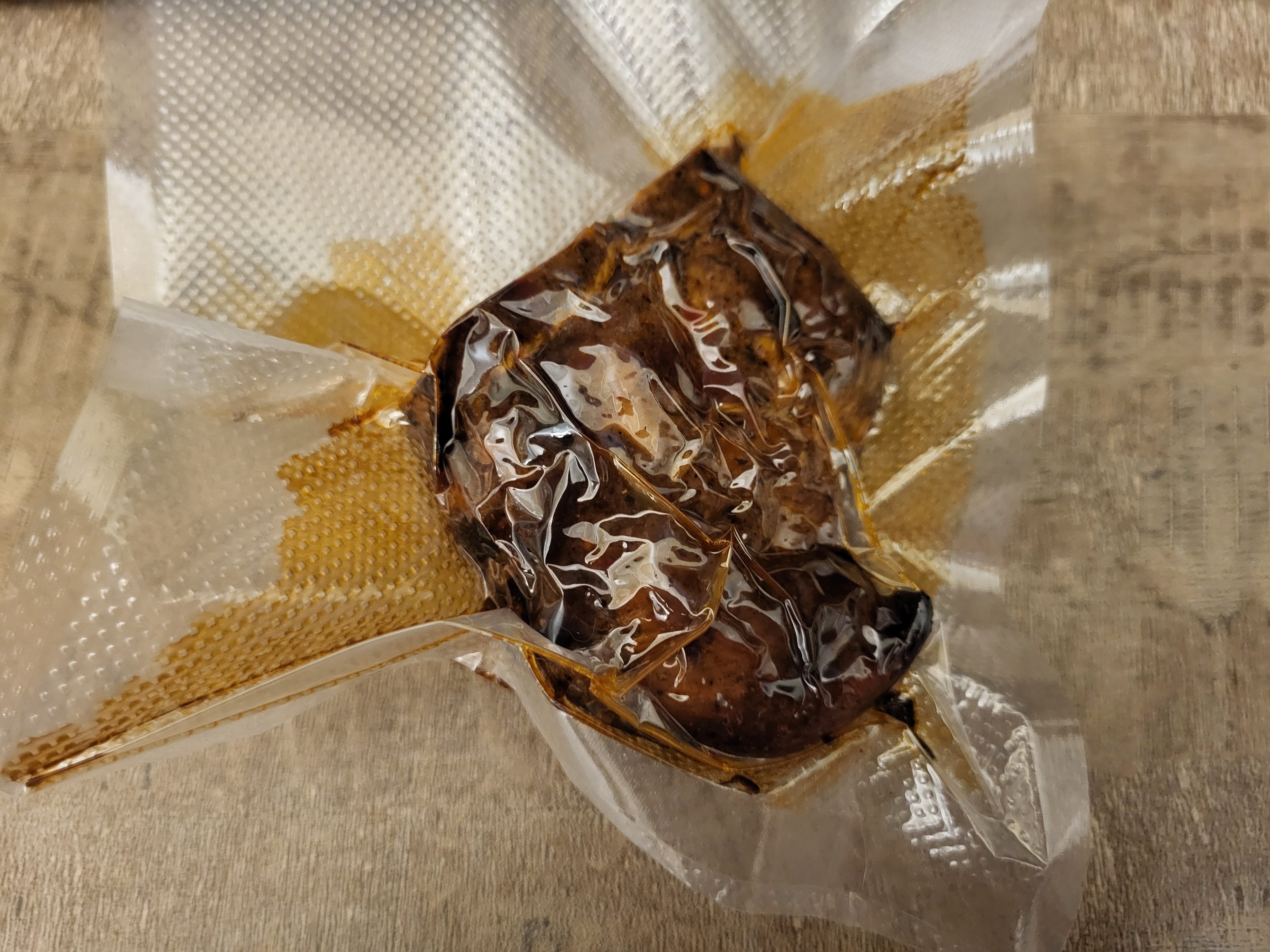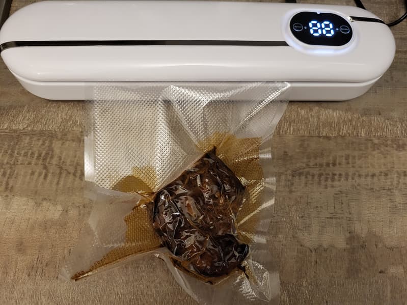 Вначале мы попробовали завакуумировать кусок запеченного мяса индейки.