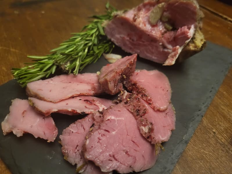 Мясо полностью приготовилось и получилось интересного розового цвета.
