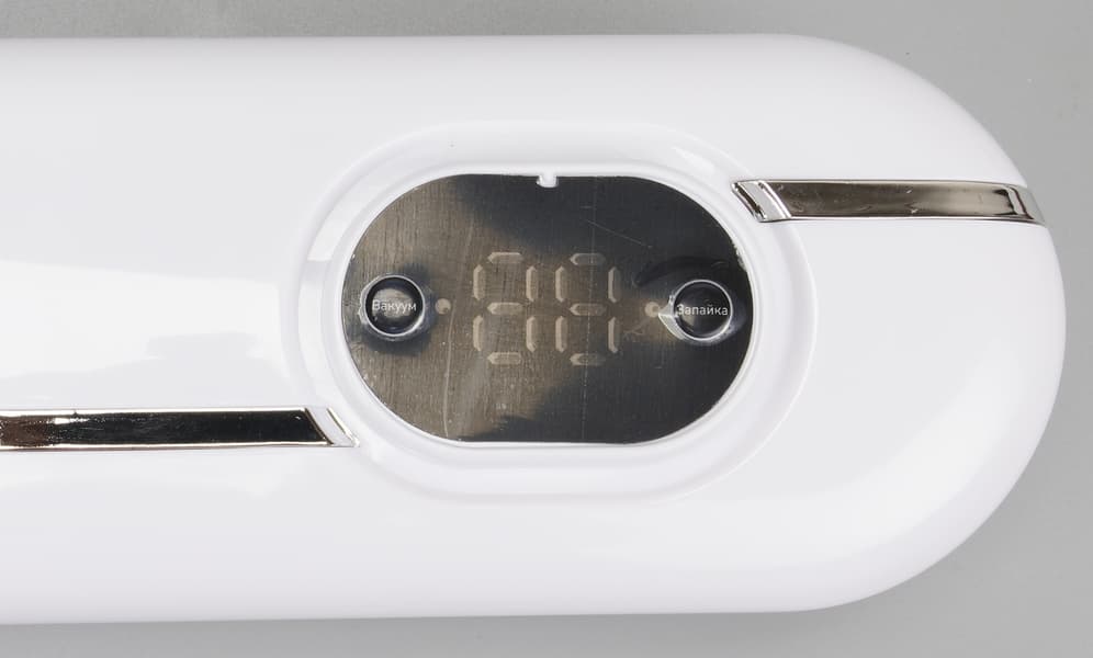 Наверное, единственная претензия к прибору — это дисплей, на котором теоретически должны отображаться секунды до завершения процессов вакуумирования и запайки, но практически не видно ничего. Дисплей начинает светиться, но какая на нем цифра — угадать совершенно невозможно. Мы пытались менять угол зрения, пытались вглядываться — но значения цифр можно только предположить.