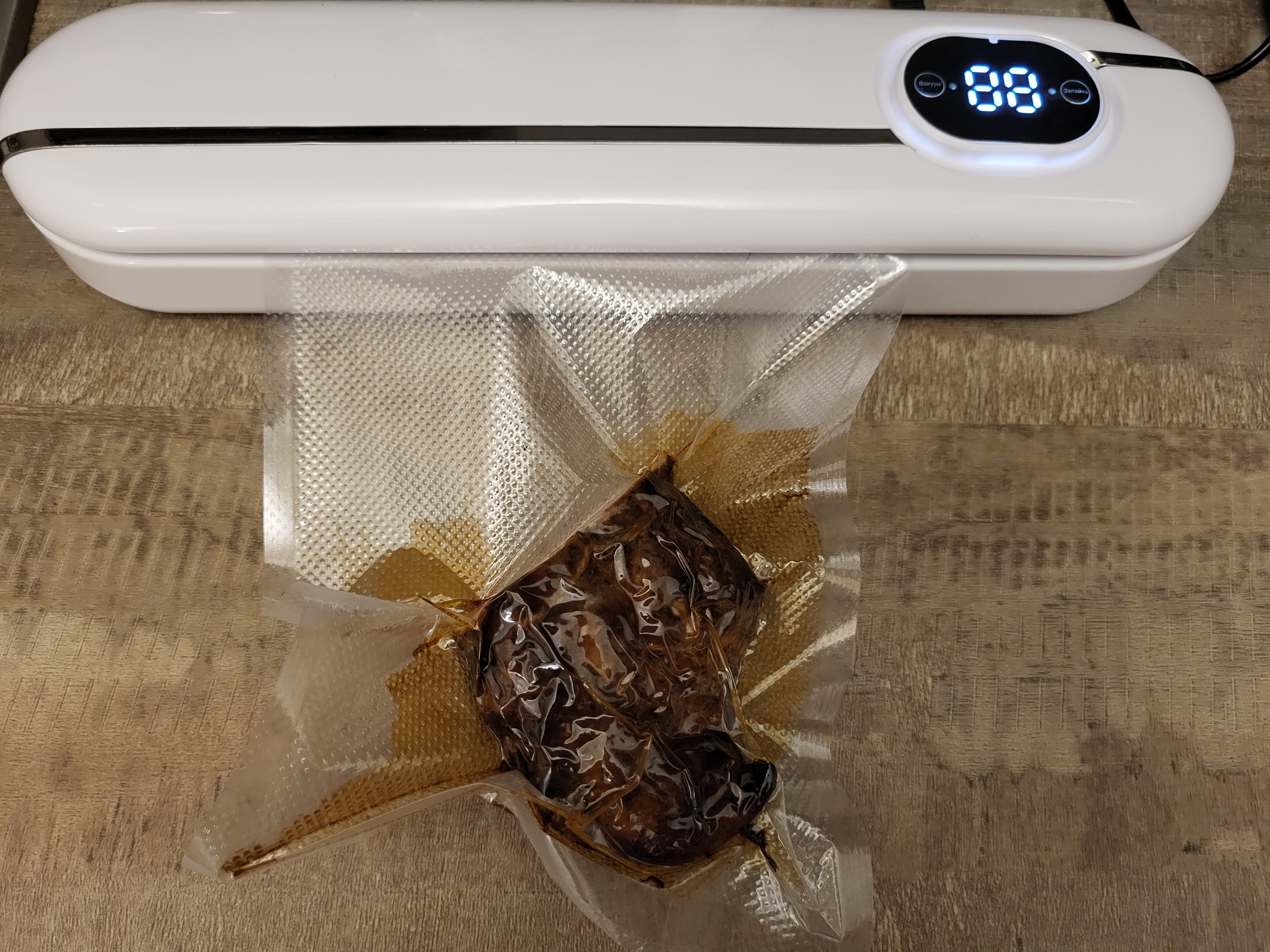 Эксплуатация прибора не вызвала никаких проблем, и, честно говоря, он нам понравился даже больше, чем более дорогие и функциональные вакууматоры. Никаких претензий ни к вакуумированию, ни к качеству шва у нас не возникло. Запаянные пакеты лежат несколько дней в холодильнике без разгерметизации.