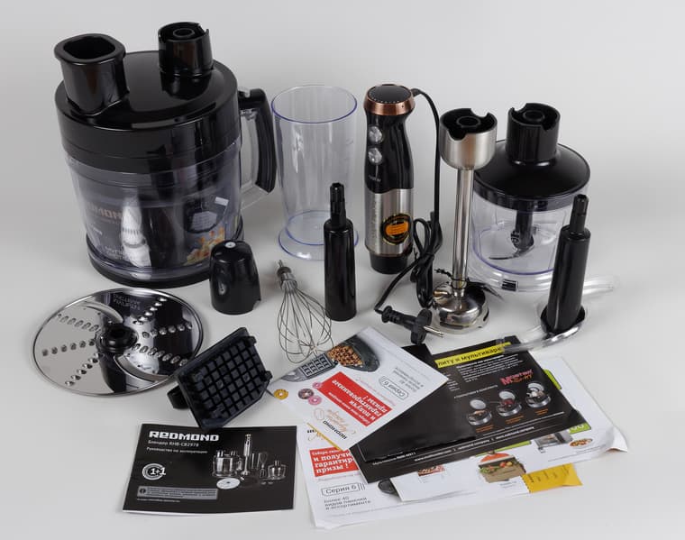 Понятно, что выбирать ту или иную модель только лишь из-за богатой комплектации не стоит. Однако, если вы и в самом деле собираетесь использовать все эти аксессуары — то не будет лишним иметь в виду, что погружной блендер вполне может взять некоторые функции кухонного комбайна и существенно упростить приготовление многих блюд.