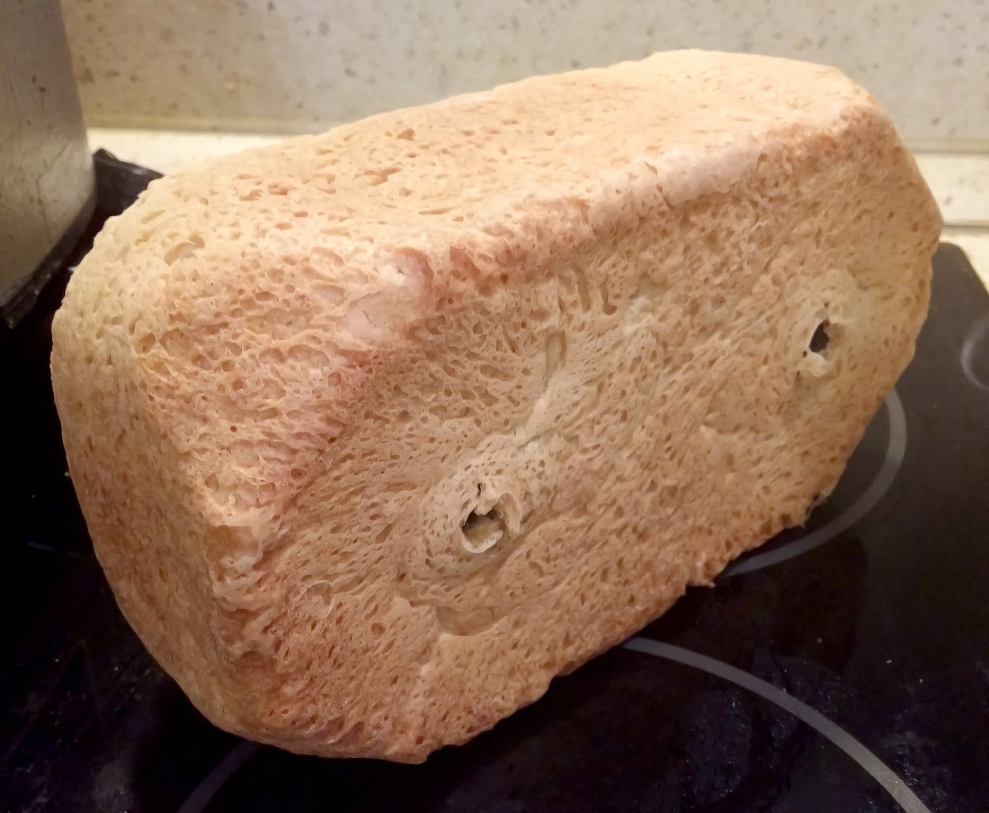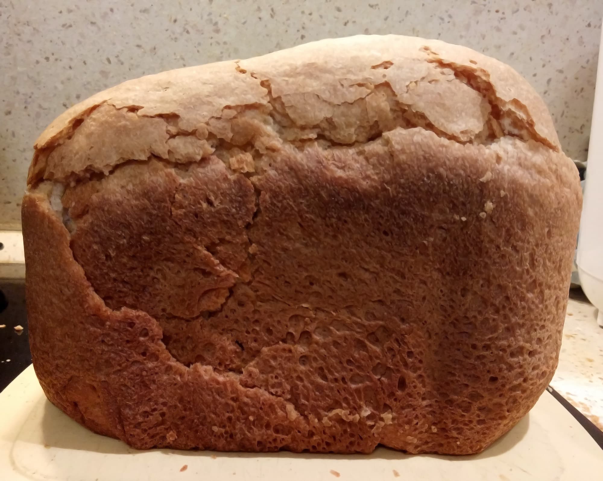 Данный рецепт нам с первого раза не удался — возможно, из-за того, что мед не может заменить дрожжам сахар: брожение было недостаточным и хлеб плохо поднялся, остался спрессованным. Мы бы рекомендовали экспериментировать с самим режимом, поскольку при повышенном объеме сухих дрожжей и чуть более теплой воде нам удалось добиться приличных результатов, и поэтому общую оценку мы сильно не снижаем.
