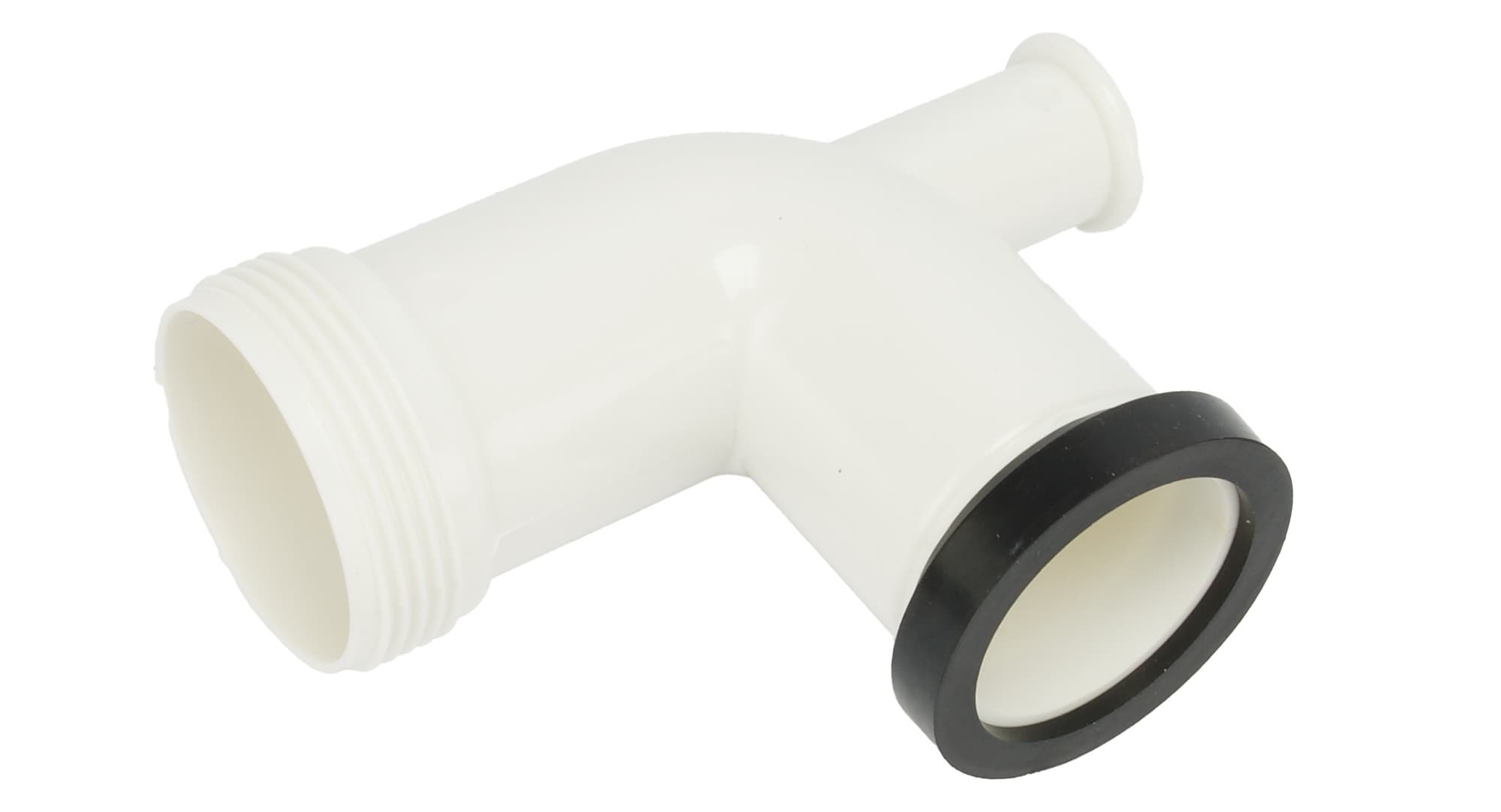 Далее подключаем к фланцу пластиковую гофру с гайкой (а еще лучше и надежнее — жесткую конструкцию из полипропиленовых труб с коленом) и выводим слив в канализацию.