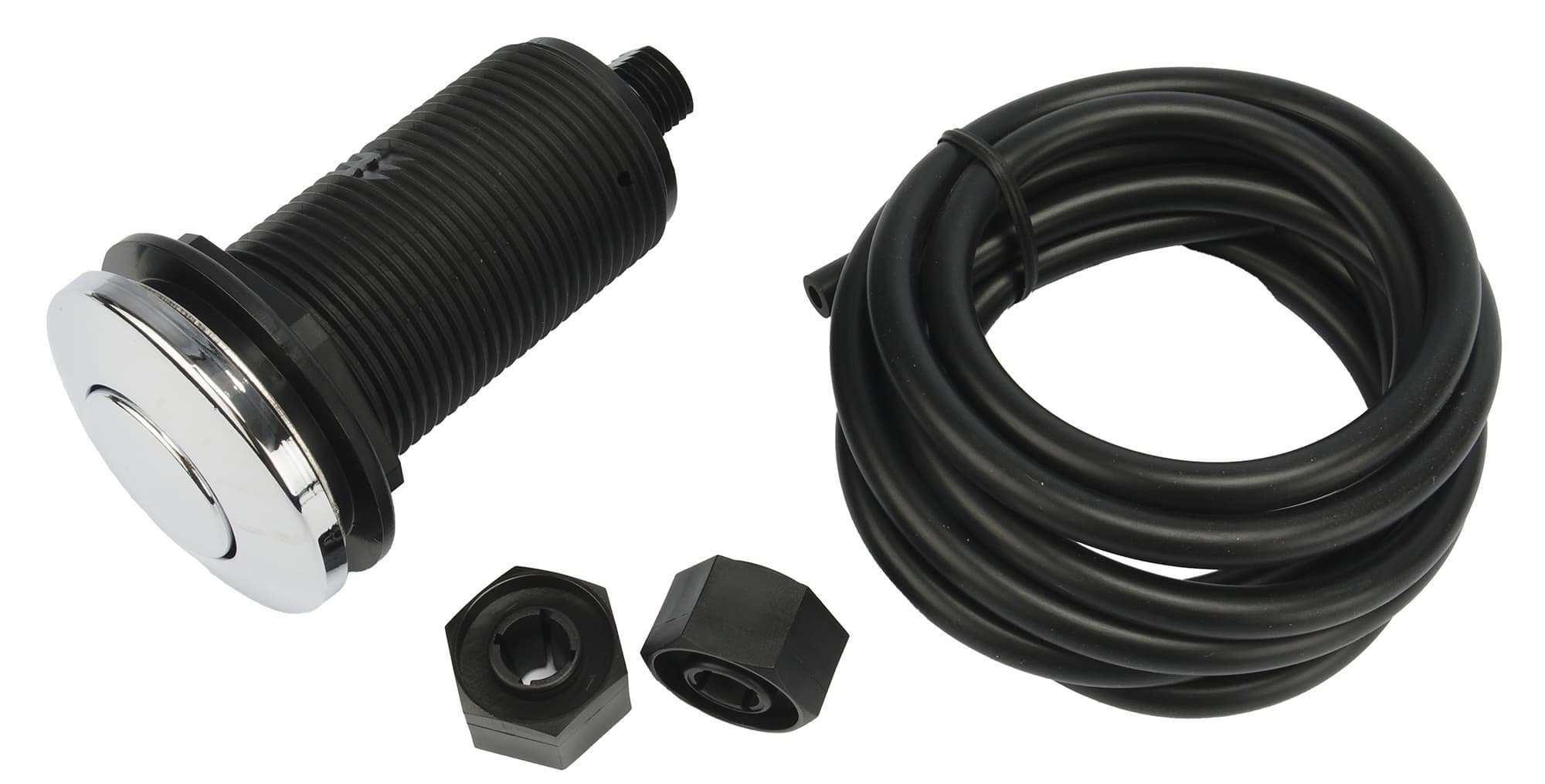 Измельчитель управляется единственной пневмокнопкой, которая устанавливается в любом удобном месте — как правило, на столешнице или на самой мойке.