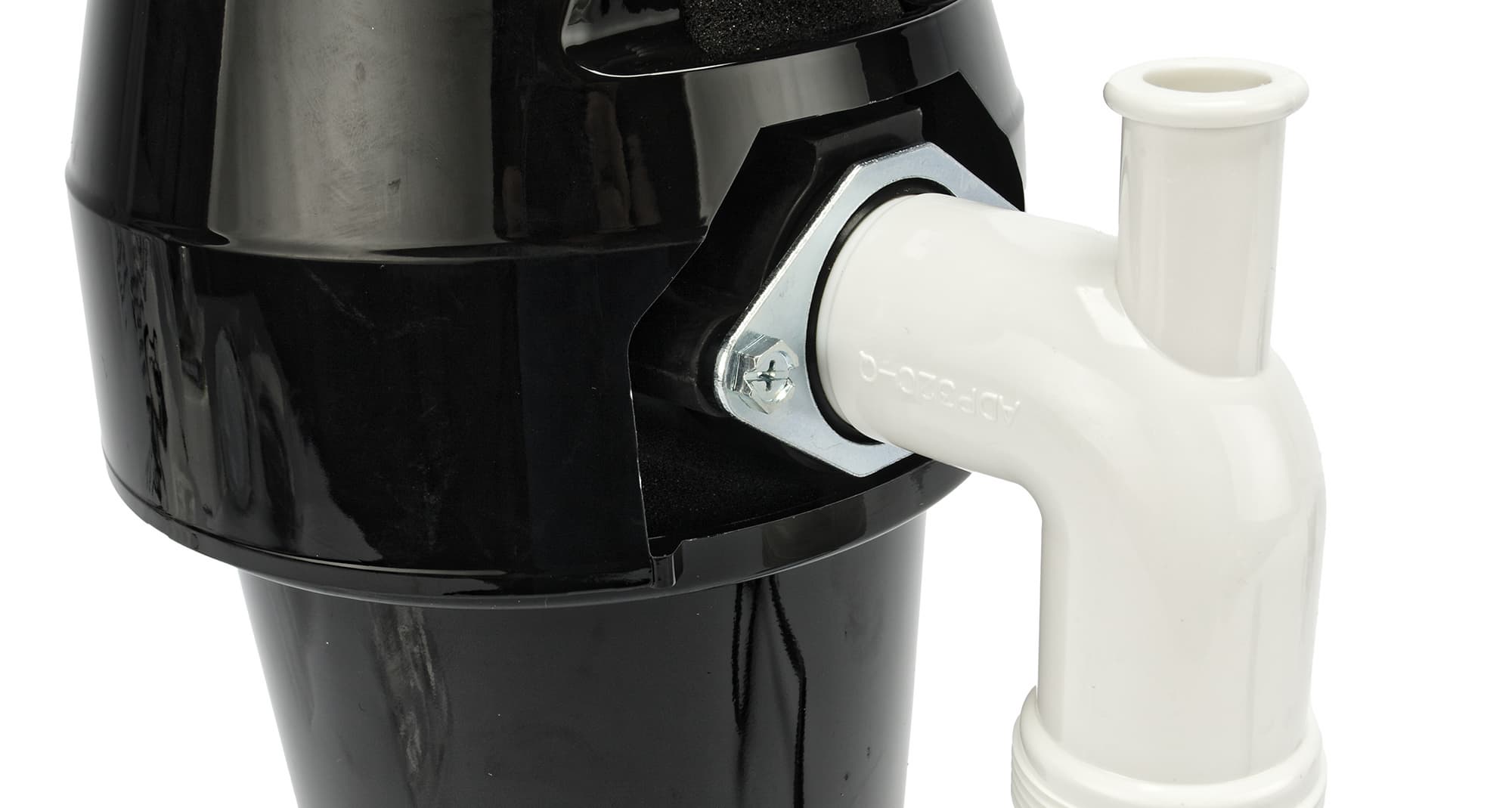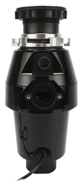 Итак, корпус измельчителя — главная и самая массивная часть прибора. Сам корпус сделан из черного пластика. Выглядит прочным. Пластик качественный и не производит впечатление дешевого. Рассматривать измельчитель после монтажа, конечно, никто не будет, поэтому пластик теоретически можно было взять не очень красивый, однако производитель экономить не стал.