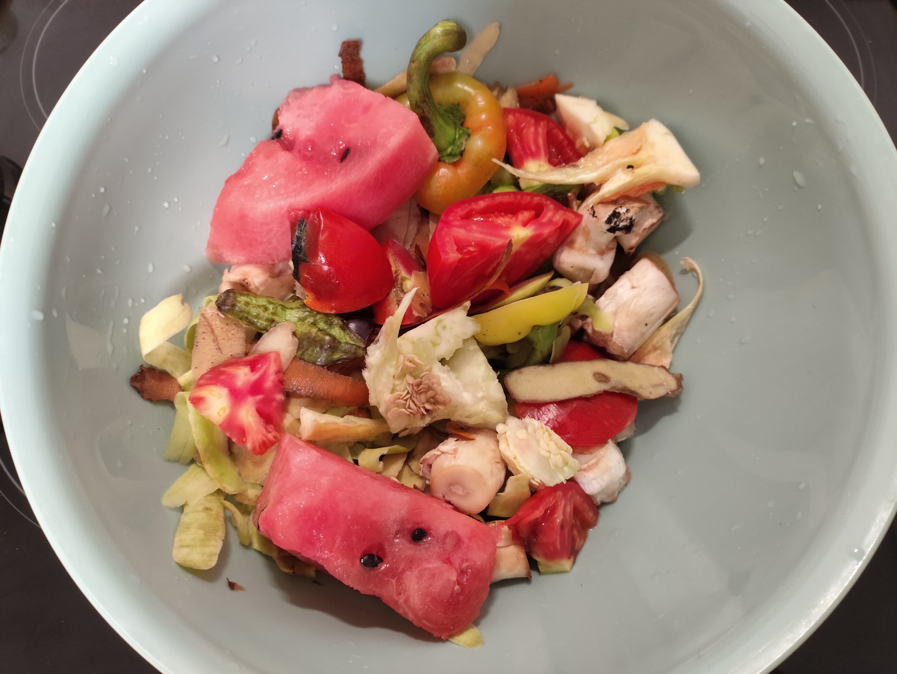 Возьмем теперь набор из различных отходов — арбуз, перец, грибы, помидоры, картофельные очистки и т. д. Общий вес — 1,2 кг.