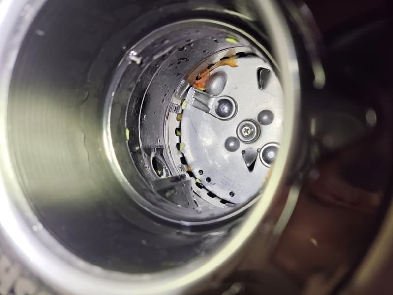 После этого мы заглянули в камеру и извлекли остатки отходов. Волокнистых частиц внутри почти не обнаружилось. Извлекать их вручную было не обязательно — они измельчатся в ходе следующих запусков устройства, после того как слегка размокнут в воде.