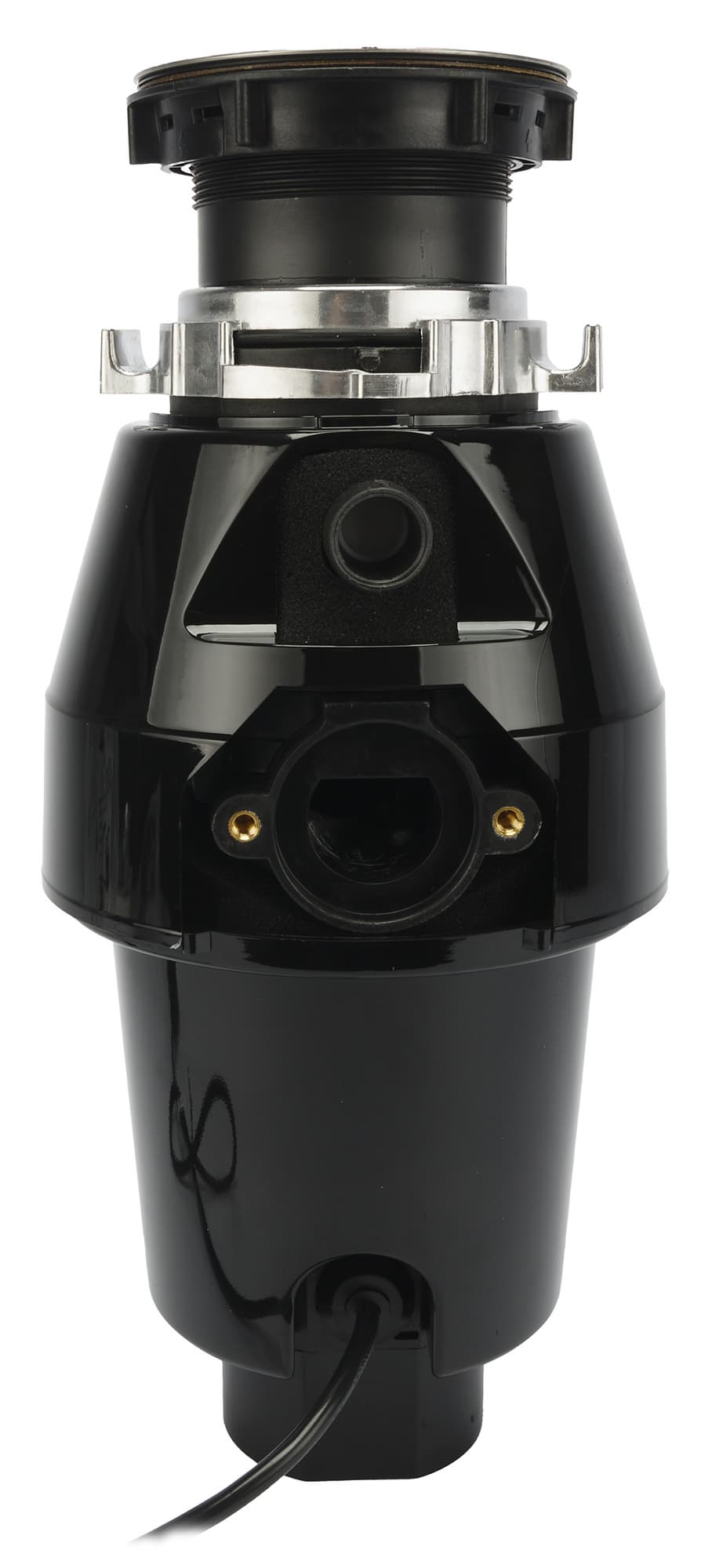 С тыльной стороны расположены отверстие для подключения слива посудомоечной машины (сверху) и отверстие для слива воды с измельченными отходами (снизу).
