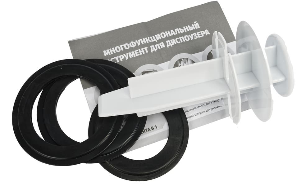 Что нам предстоит сделать? Во-первых, снять монтажный комплект с верхней части измельчителя и вооружиться инструкцией, чтобы не перепутать последовательность установки элементов. Если вы уже устанавливали измельчители, то сюрпризов не будет. Если нет — внимательно следуйте указаниям из брошюры.