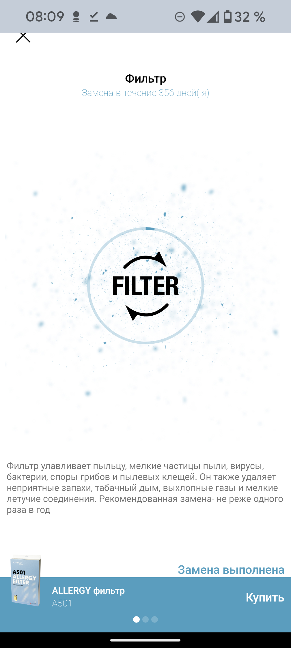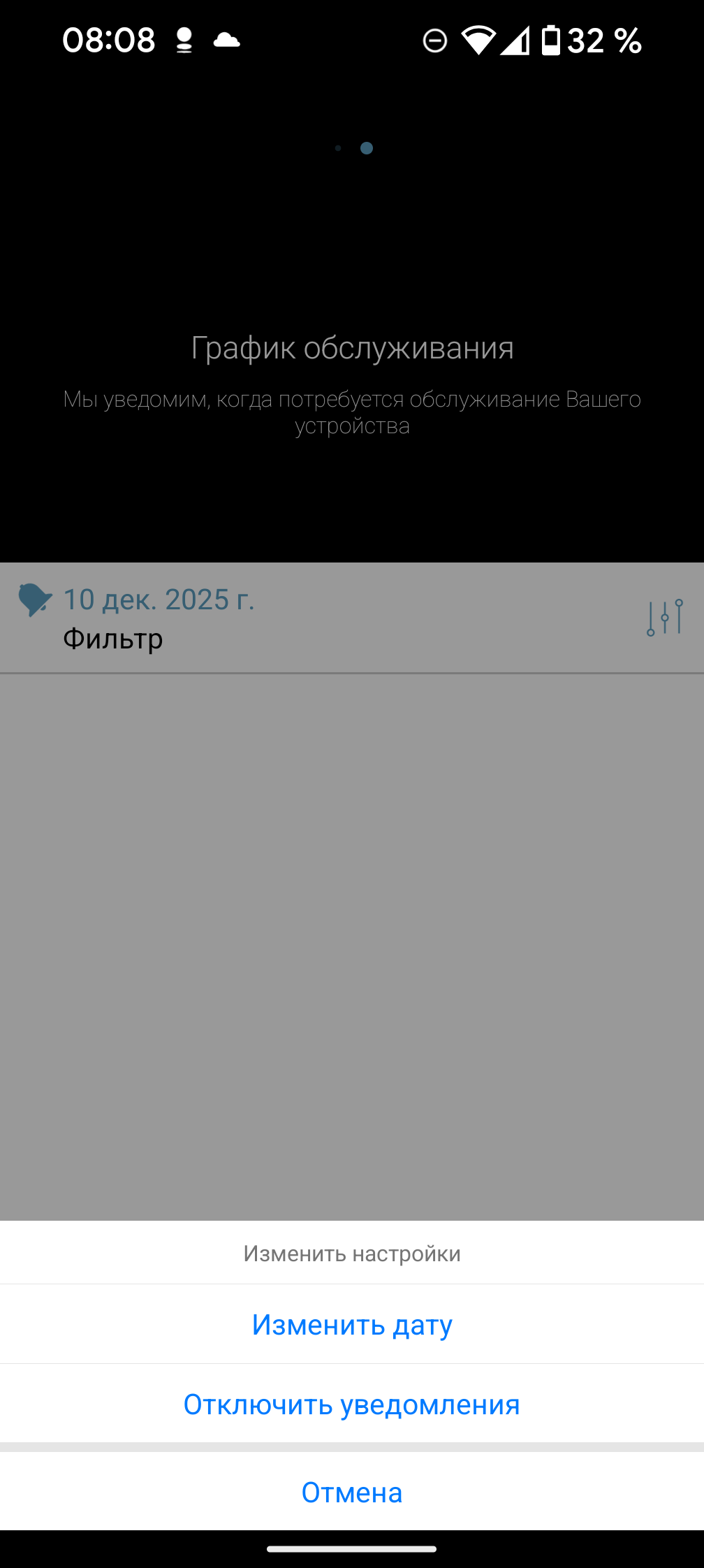На странице информации о фильтре мы видим дату окончания его эксплуатации: приложение заблаговременно напомнит о необходимости приобрести новый картридж.