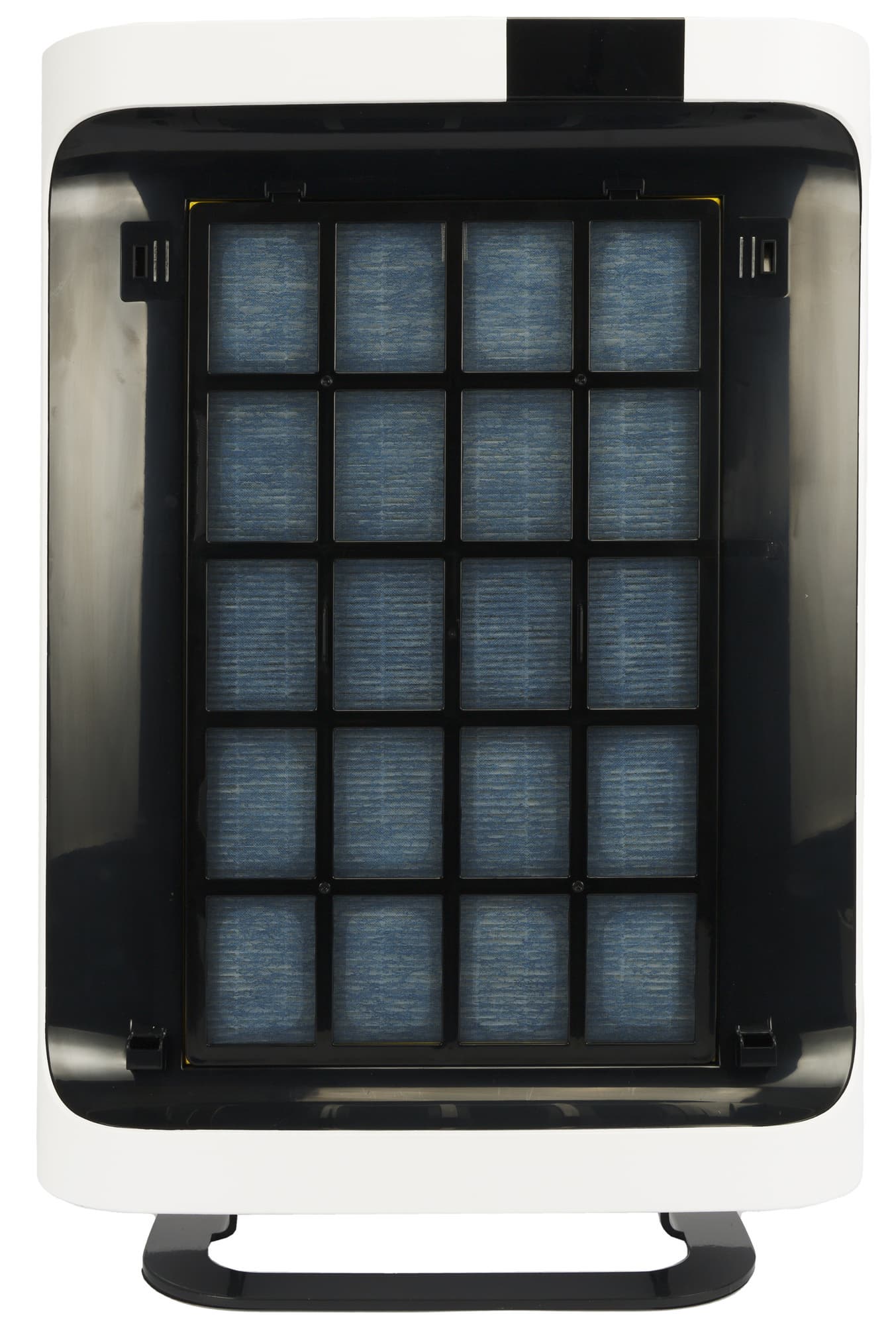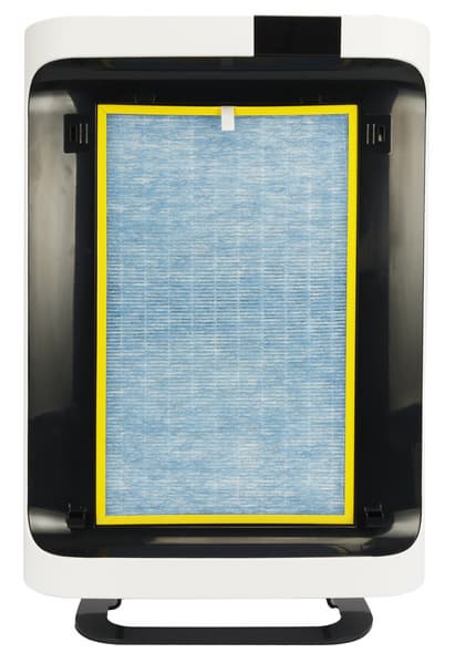 За HEPA-элементом расположен угольный фильтр. Гранулы активированного угля, распределенного в его ячейках, предназначены для борьбы с летучими веществами: фильтр задерживает вредную органику и очищает воздух от неприятных запахов.
