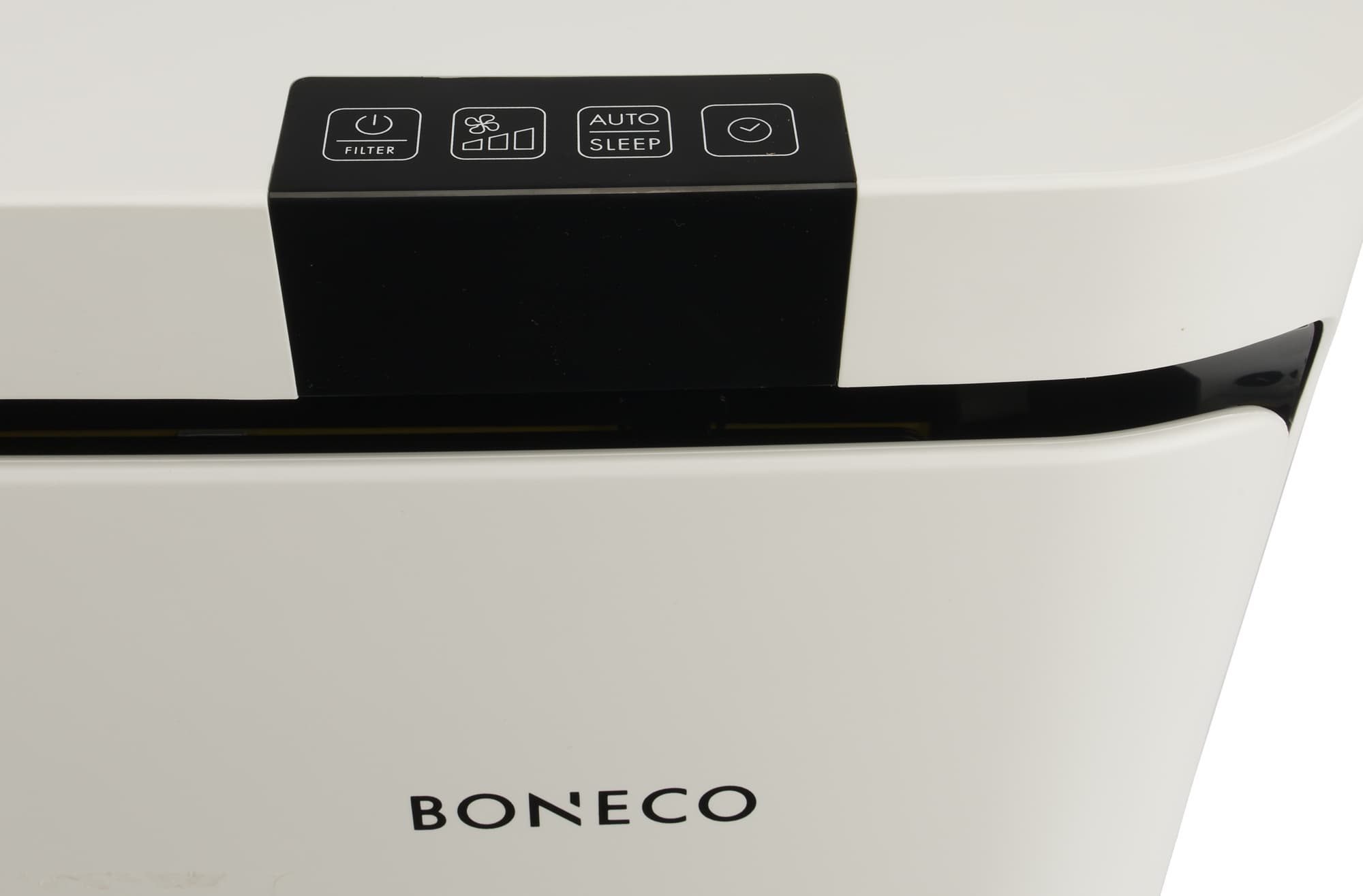 Панель управления Boneco P500 выполнена из гладкого черного пластика с сенсорными кнопками и светодиодным дисплеем.
