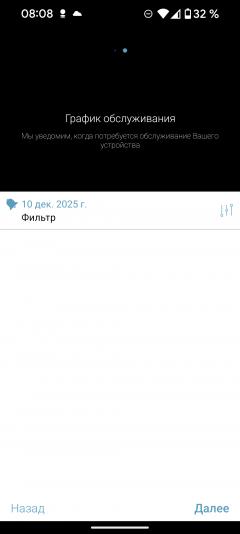 Последний шаг — ввод даты начала эксплуатации, с которой будет отсчитываться ресурс фильтра. Приложение не получает каких-либо данных об интенсивности использования прибора и предполагает, что замена картриджа потребуется ровно через 365 дней с первого запуска.