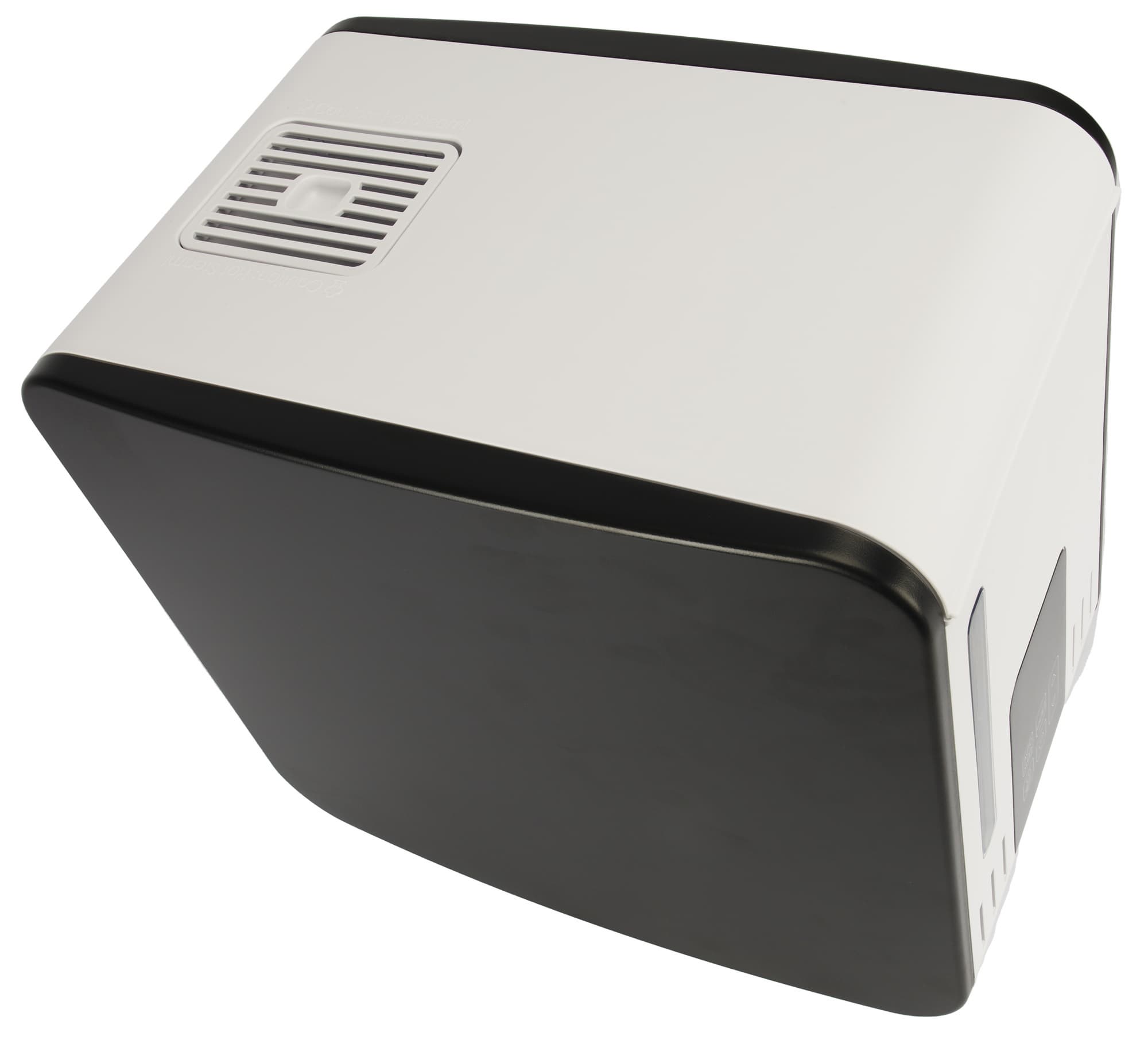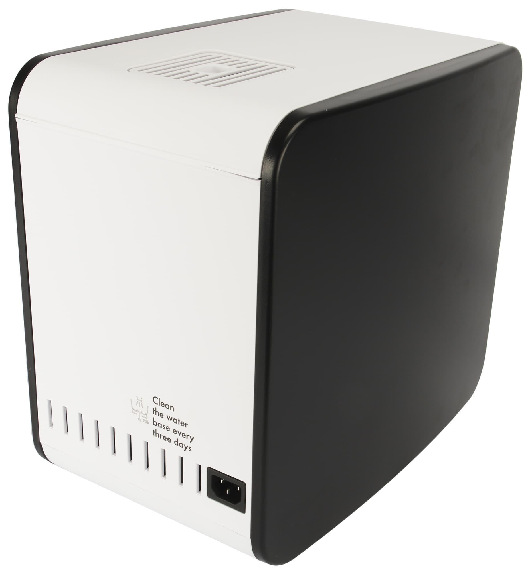 Увлажнитель изготовлен из гладкого пластика белого и черного цветов. Углы скруглены, в целом прибор немного напоминает по форме системный блок компьютера. Помните, когда они были большими в форме вытянутого в глубину параллелепипеда?