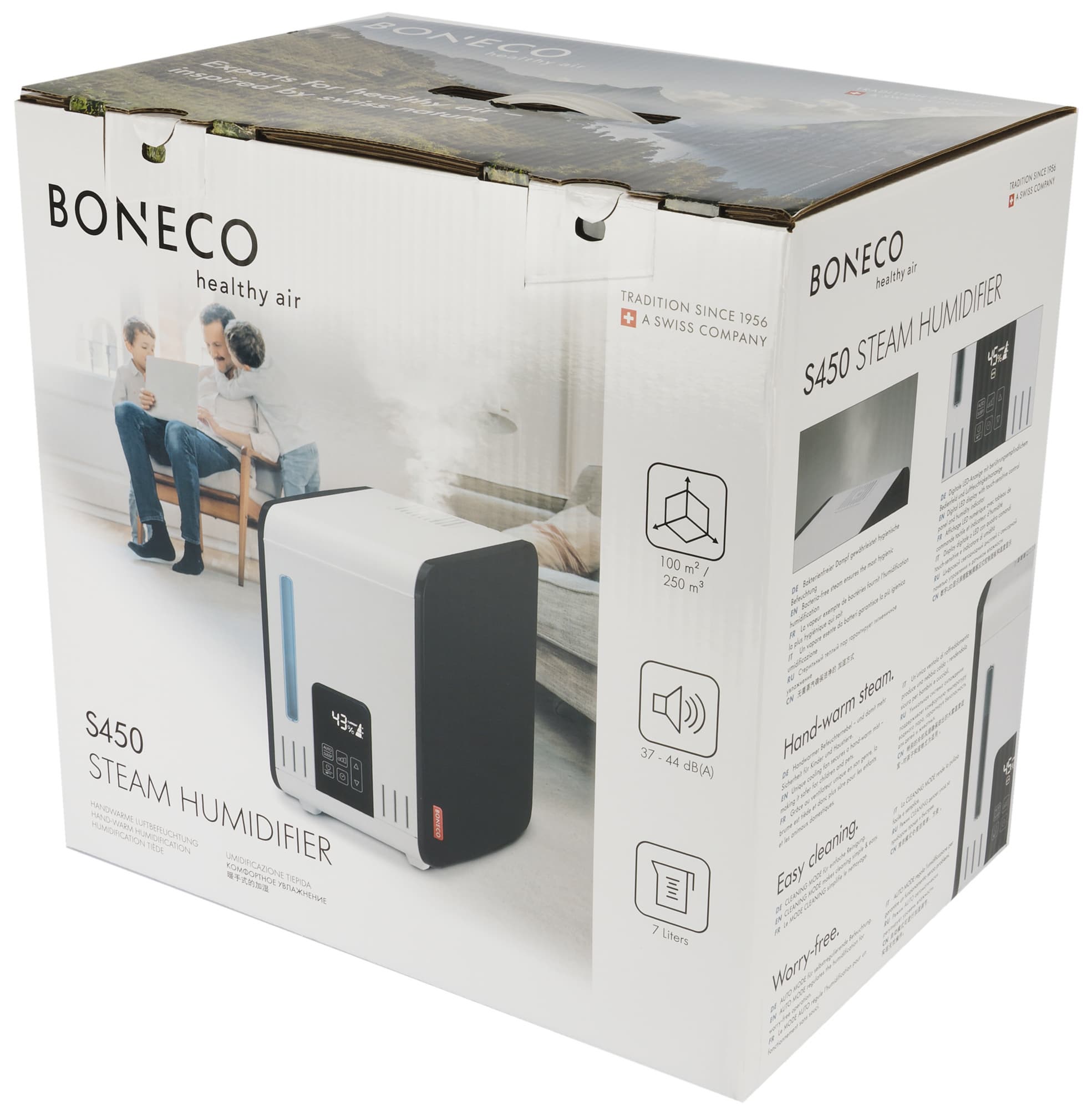 В сезон отопления многие из нас сталкиваются с проблемой пересушенного воздуха, который самым негативным образом влияет на состояние кожи и слизистых. Именно поэтому зимой так востребованы увлажнители воздуха. Герой сегодняшней статьи — паровой увлажнитель Boneco S450 — отличается от большинства своих ультразвуковых товарищей тем, что использует в работе принцип стерильного увлажнения: вода из бака поступает в специальный поддон, там нагревается и испаряется.