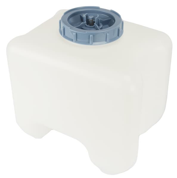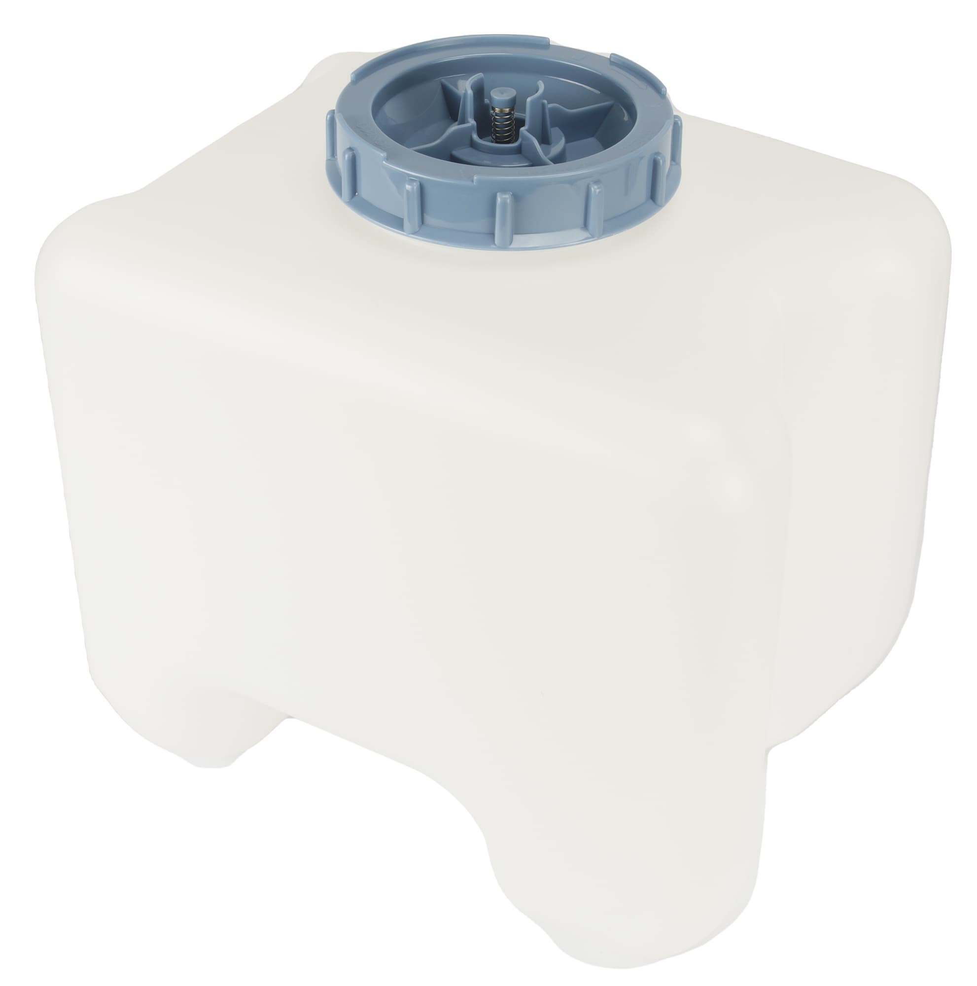 Внушительного объема бак изготовлен из полупрозрачного пищевого пластика. Отверстие заливки воды диаметром 8,5 см закрыто голубой крышкой, в устройстве которой предусмотрен подпружиненный клапан, который будет перекрывать подачу воды, если извлечь бак из корпуса.