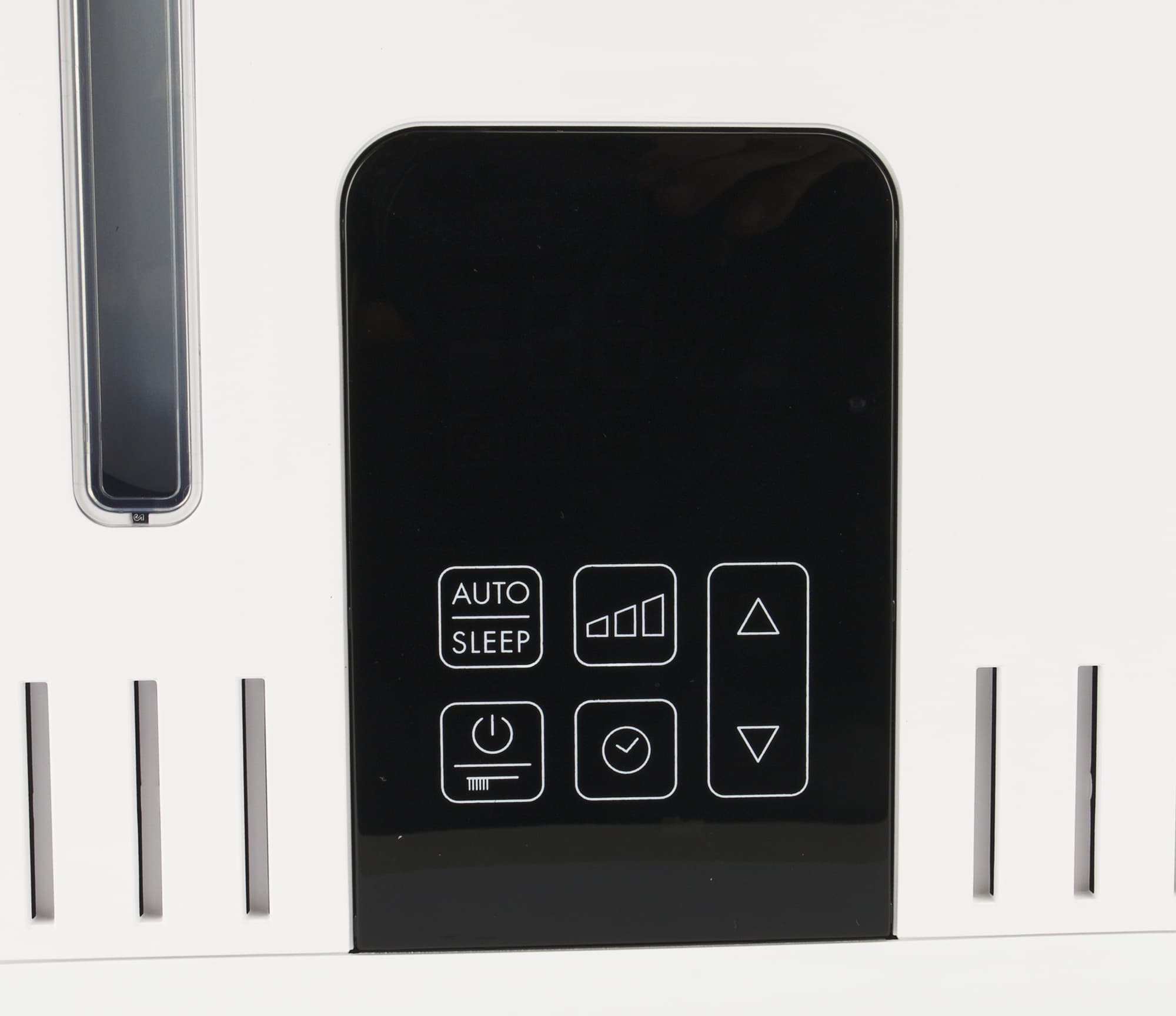 - Auto/Sleep — переключает соответствующие режимы. При включении запускается автоматический режим, в котором уровень относительной влажности устанавливается на 50%. Уровень мощности, необходимой для наиболее быстрого достижения заданной влажности прибор выбирает автоматически. В режиме Sleep или Econ, как он называется в инструкции, оптимальный уровень влажности установлен на 45%. Мощность работы, чтобы максимально быстро достигнуть целевого показателя, увлажнитель выбирает самостоятельно.