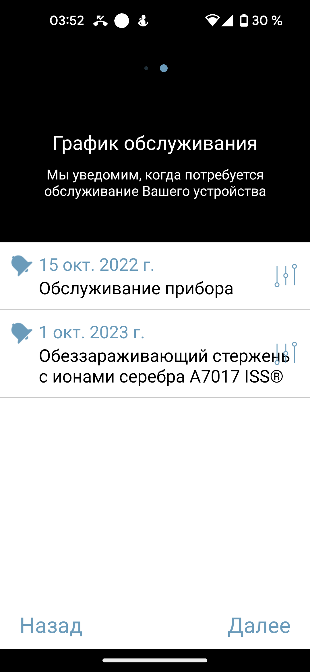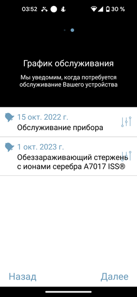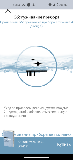 Иконки на главной странице позволяют увидеть ресурс расходников (в нашем случае — серебряного стержня ISS) и посмотреть, сколько времени осталось до следующей чистки. Здесь же располагаются видеоинструкции, которые можно изучить прямо в приложении, и ссылки на электронное руководство.