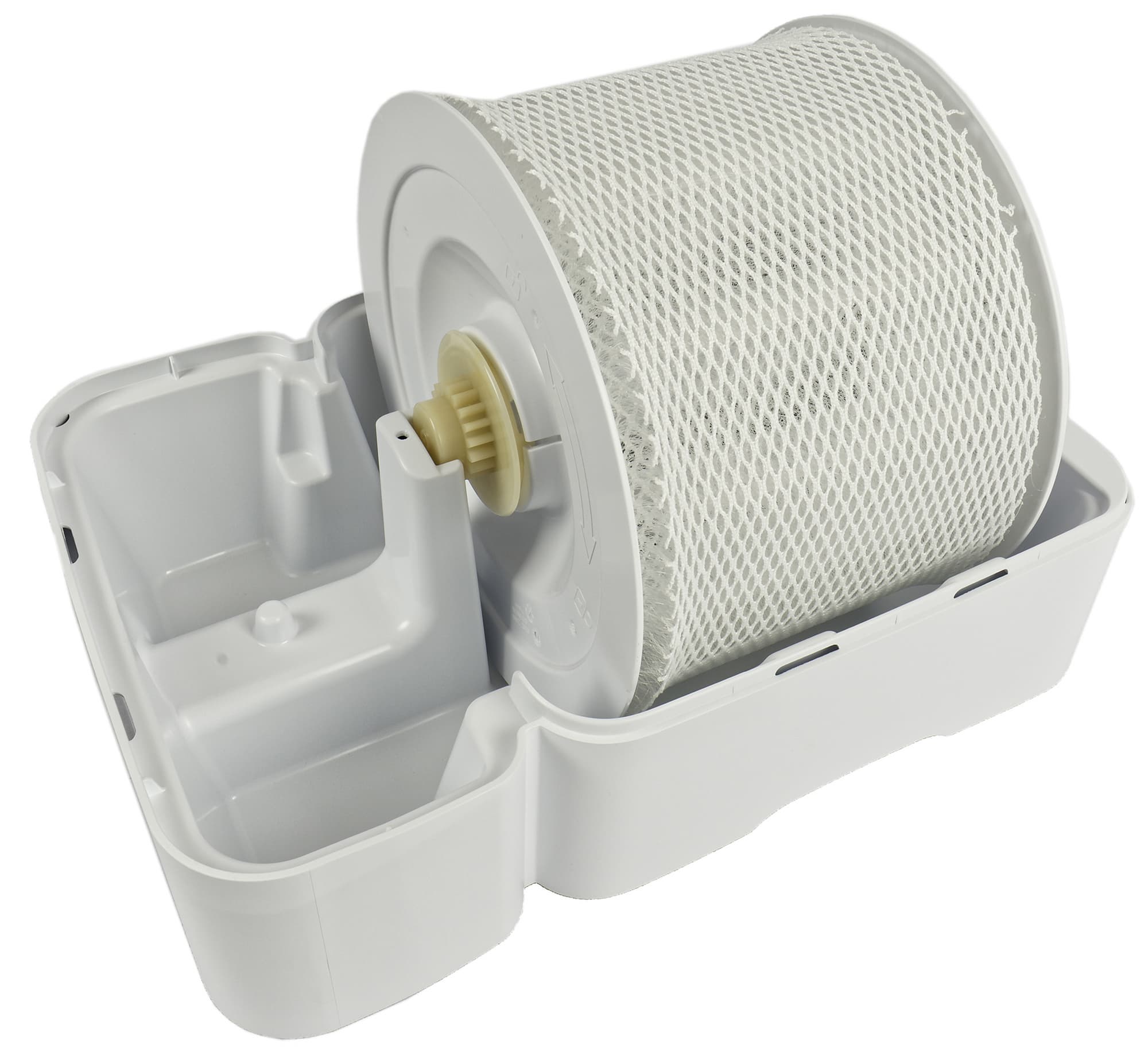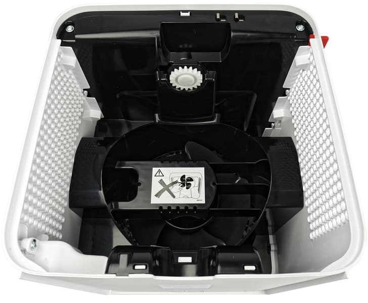 Конструкция ротора у Boneco W400 не такая, как у похожих по функциональности моек для воздуха, которые мы уже тестировали. Его рабочий элемент — не стопка пластиковых дисков, с поверхности которых происходит испарение, а синтетическая губка сложной трехмерной структуры на пластиковом каркасе.