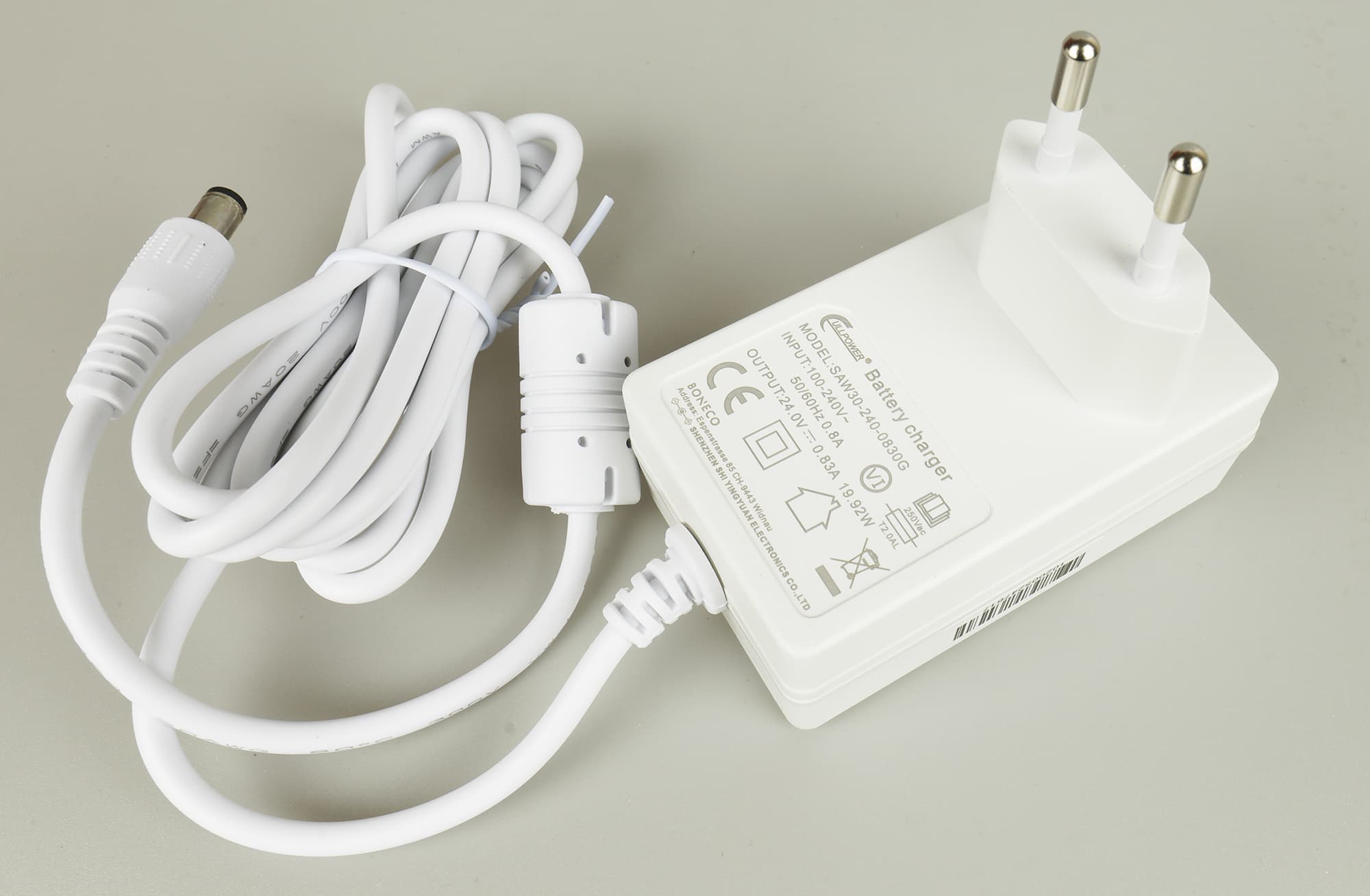 Питание устройства обеспечивается адаптером постоянного тока (24 В, 0,83 А) с двухметровым кабелем.