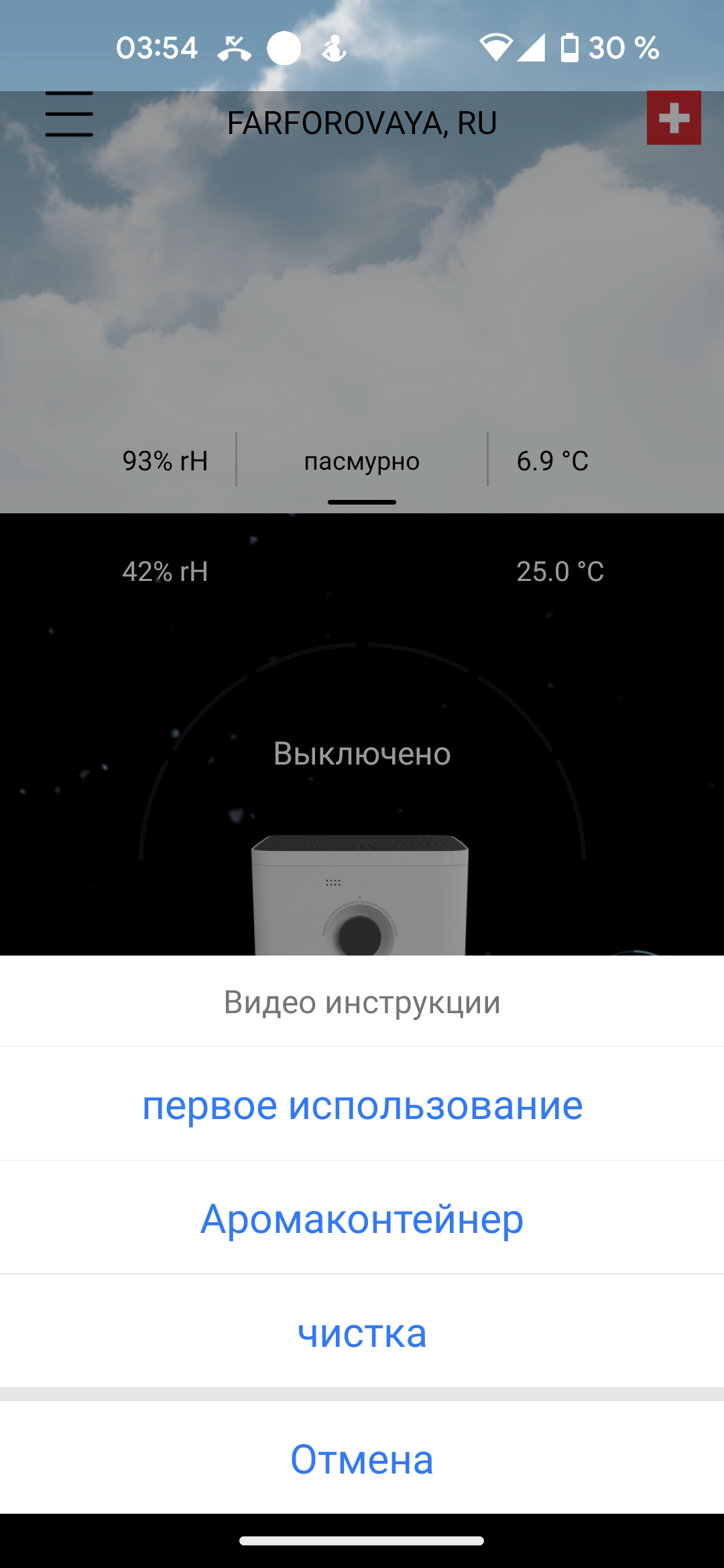 Чтобы проверить, насколько быстро и до каких значений мойка воздуха поднимает относительную влажность в помещении, мы включили устройство на максимальной мощности в комнате площадью около 18 м² с высотой потолков 2,5 м. Тест проводился в условиях октябрьского Петербурга, батареи центрального отопления были максимально горячими.