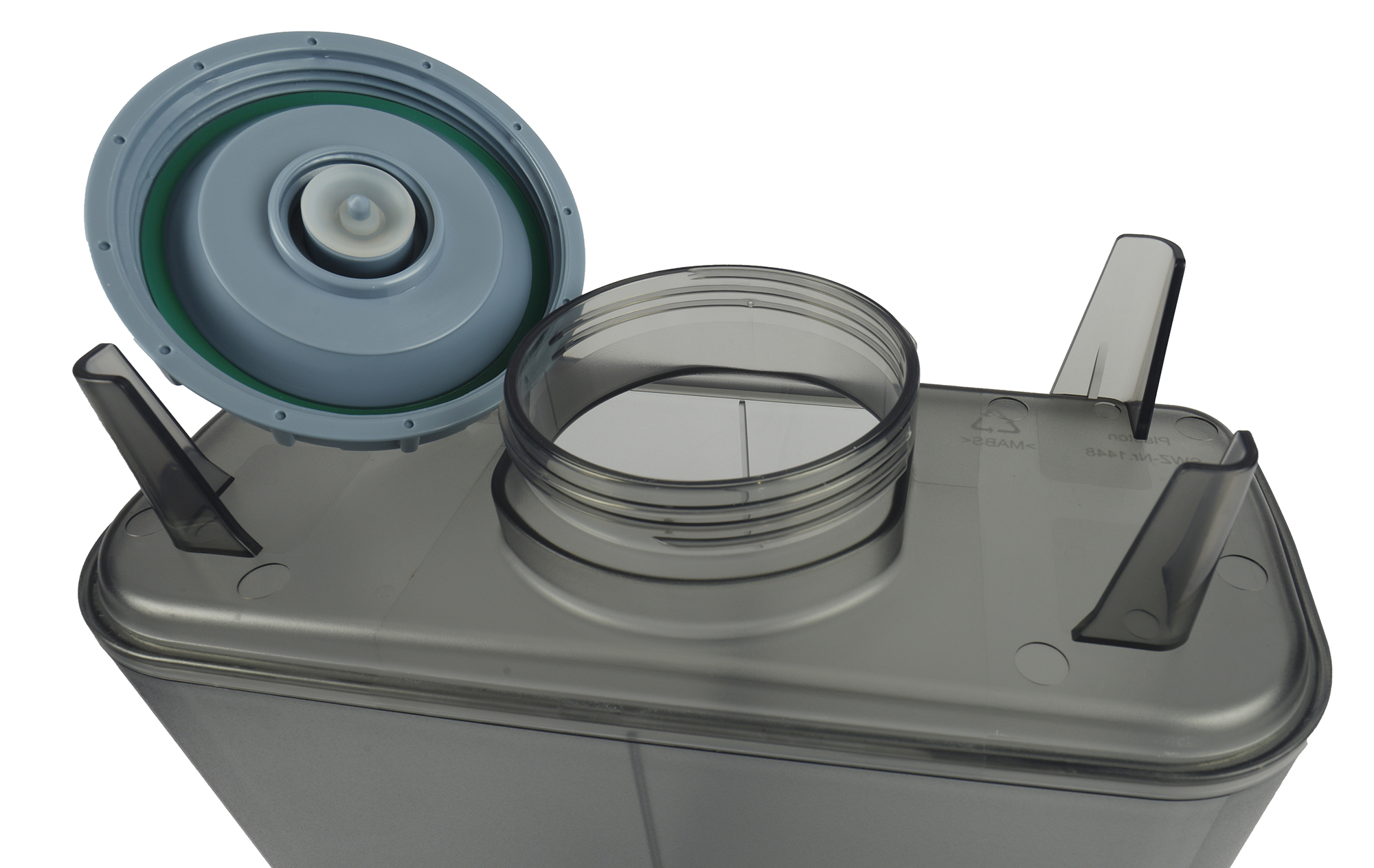 Опирается бак на четыре пластиковые ножки. В его завинчивающуюся крышку вмонтирован пружинный клапан, управляющий подачей воды в рабочую камеру.