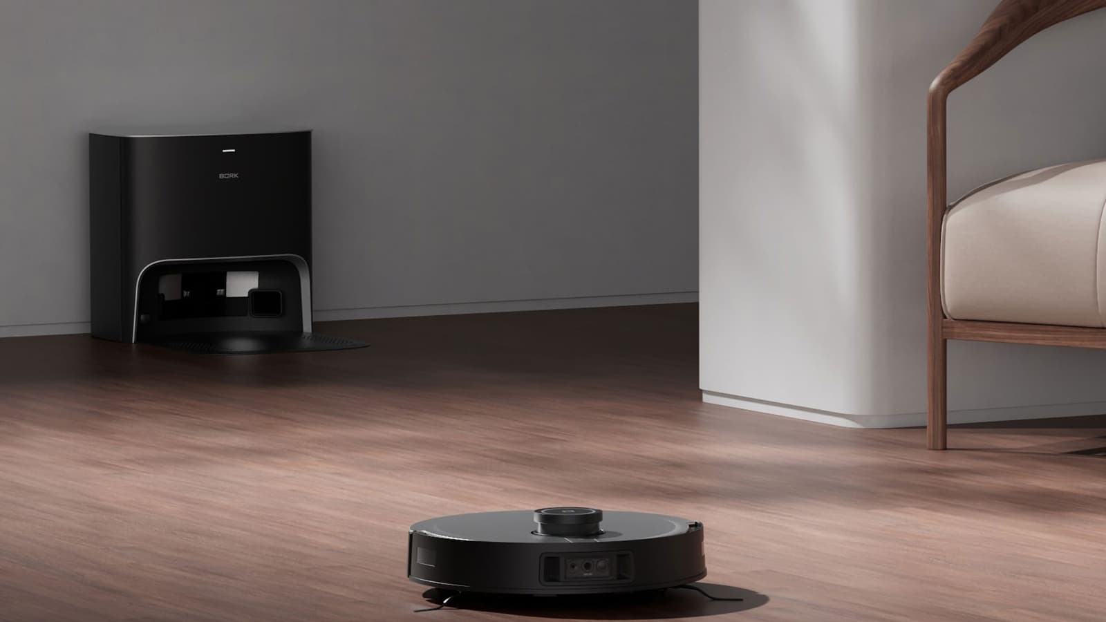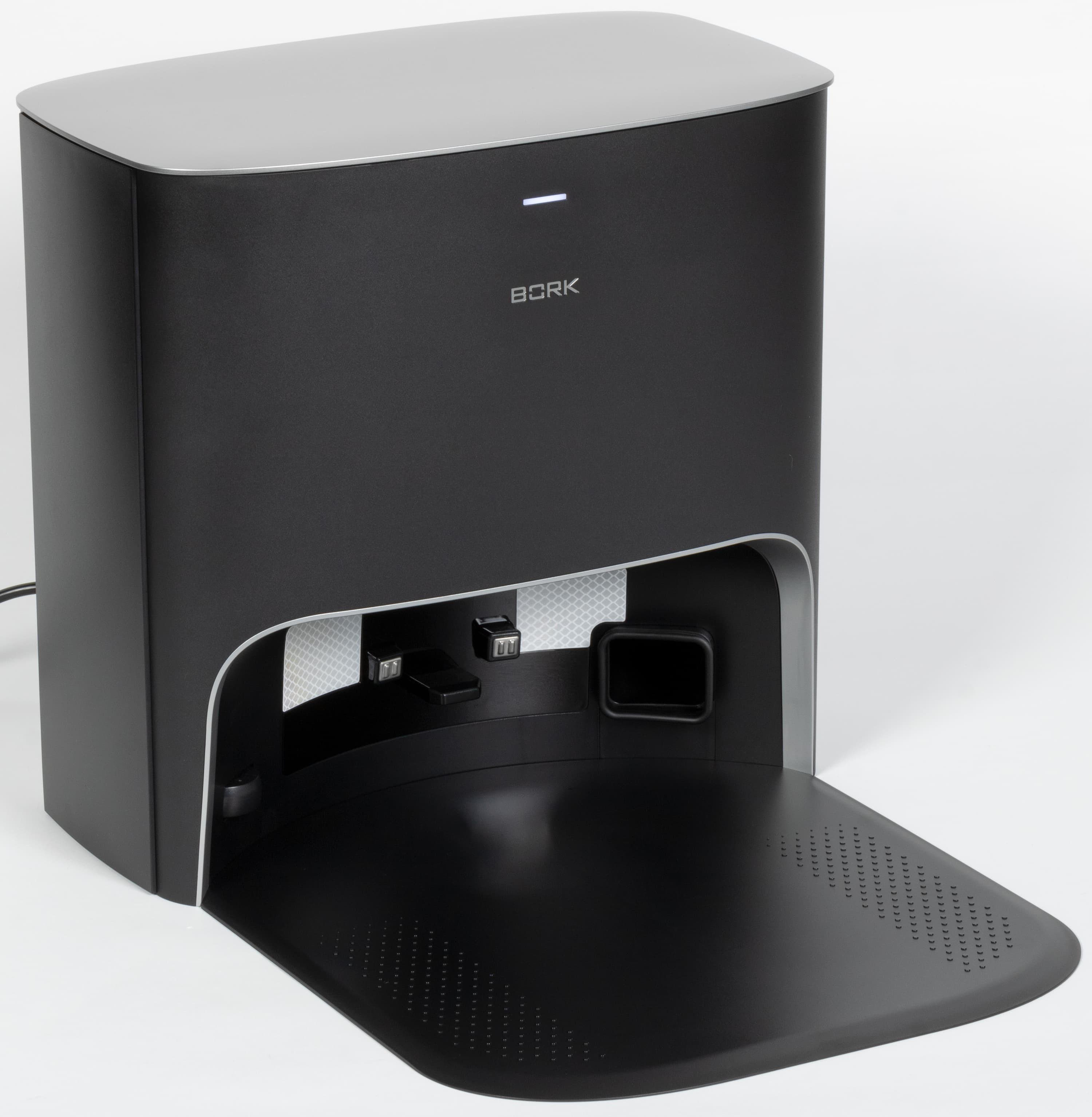 Особенно приятно, что собственной базы, в отличии от многих других роботов, наш Bork не боится, и пылесосит пол в непосредственной близости от нее.