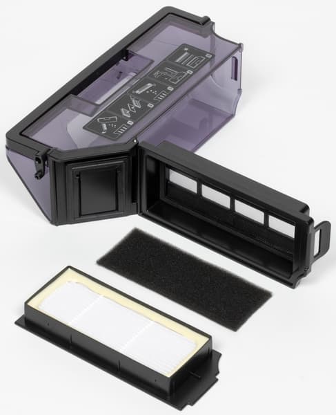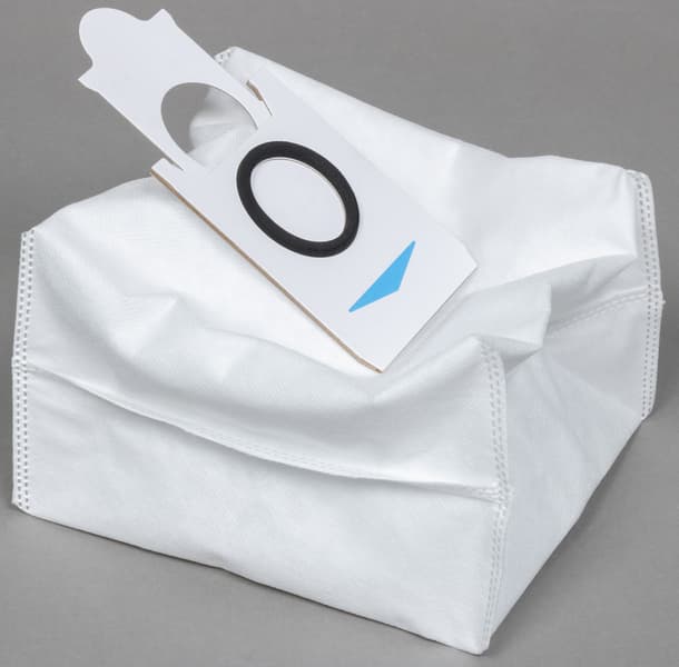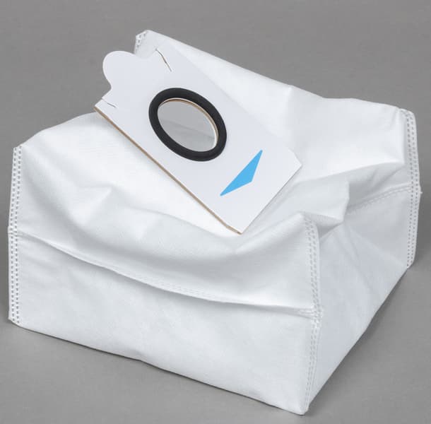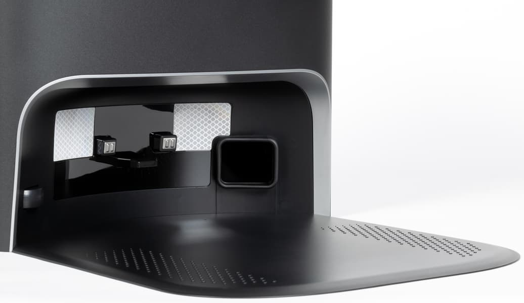 Поток воздуха с пылью и мусором покидает контейнер и направляется в одноразовый пакет, установленный в отсеке станции. Посадочное место под него оборудовано специальным датчиком, и без мешка функция самоочистки не включится.