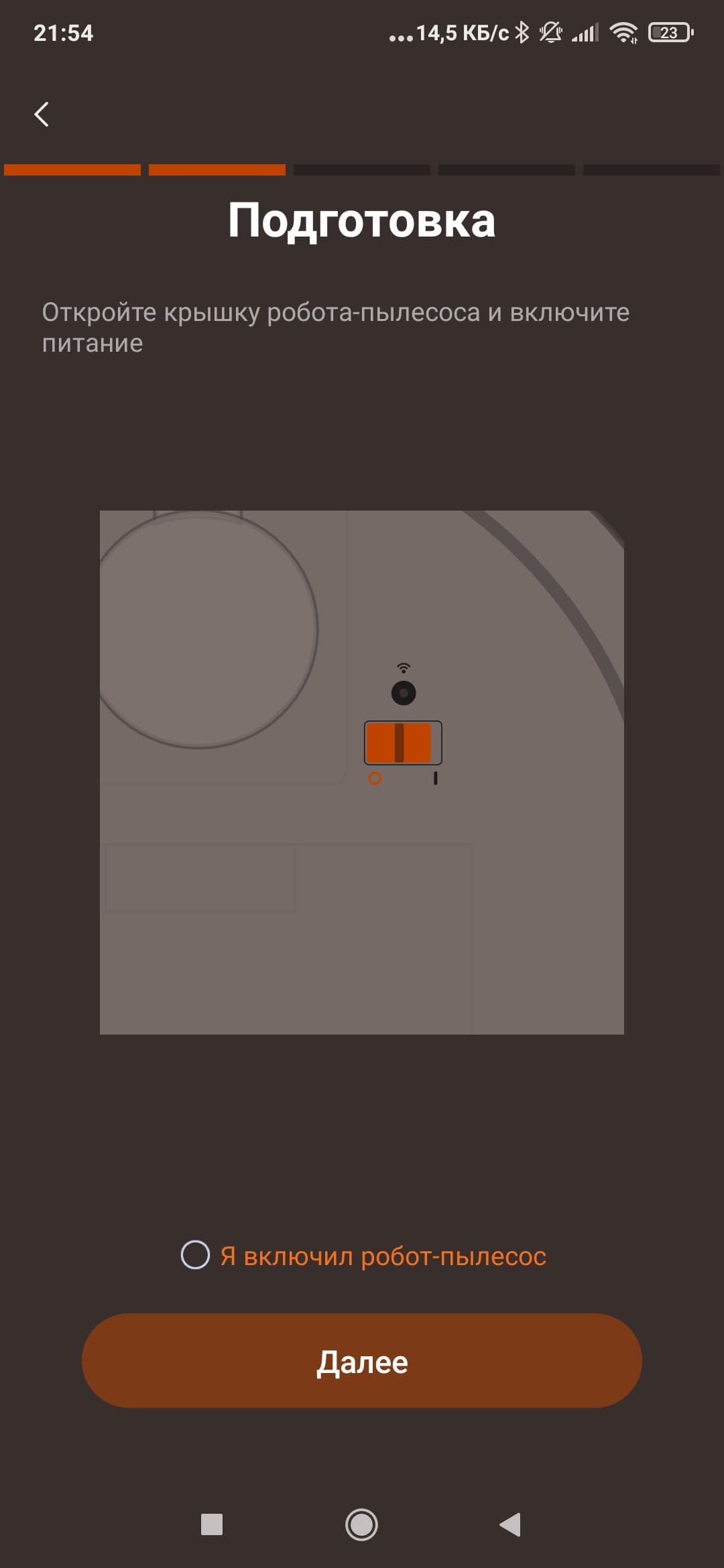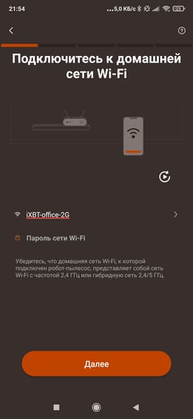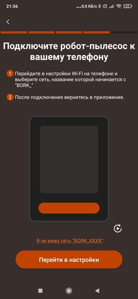 Первоначальная настройка подразумевает добавление пылесоса в список устройств. Для этого нужно зарегистрироваться, найти робота в списке, после чего подключиться к Wi-Fi-сети пылесоса и передать ему данные о домашней сети (ее название и пароль).