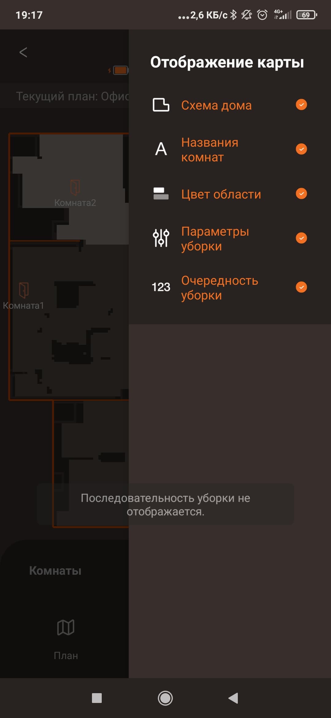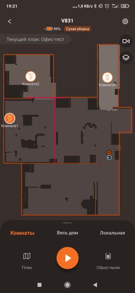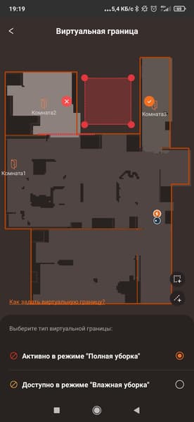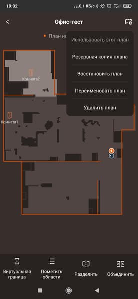 Как водится, после того, как карта создана, мы можем внести в нее изменения вручную. В том числе, разделить и объединить комнаты, переименовать их, установить виртуальные стены и запретные зоны (для полной и влажной уборки отдельно!), настроить параметры уборки и задать последовательность, в которой будут очищаться помещения. Также допускается запустить робот лишь в некоторых комнатах.