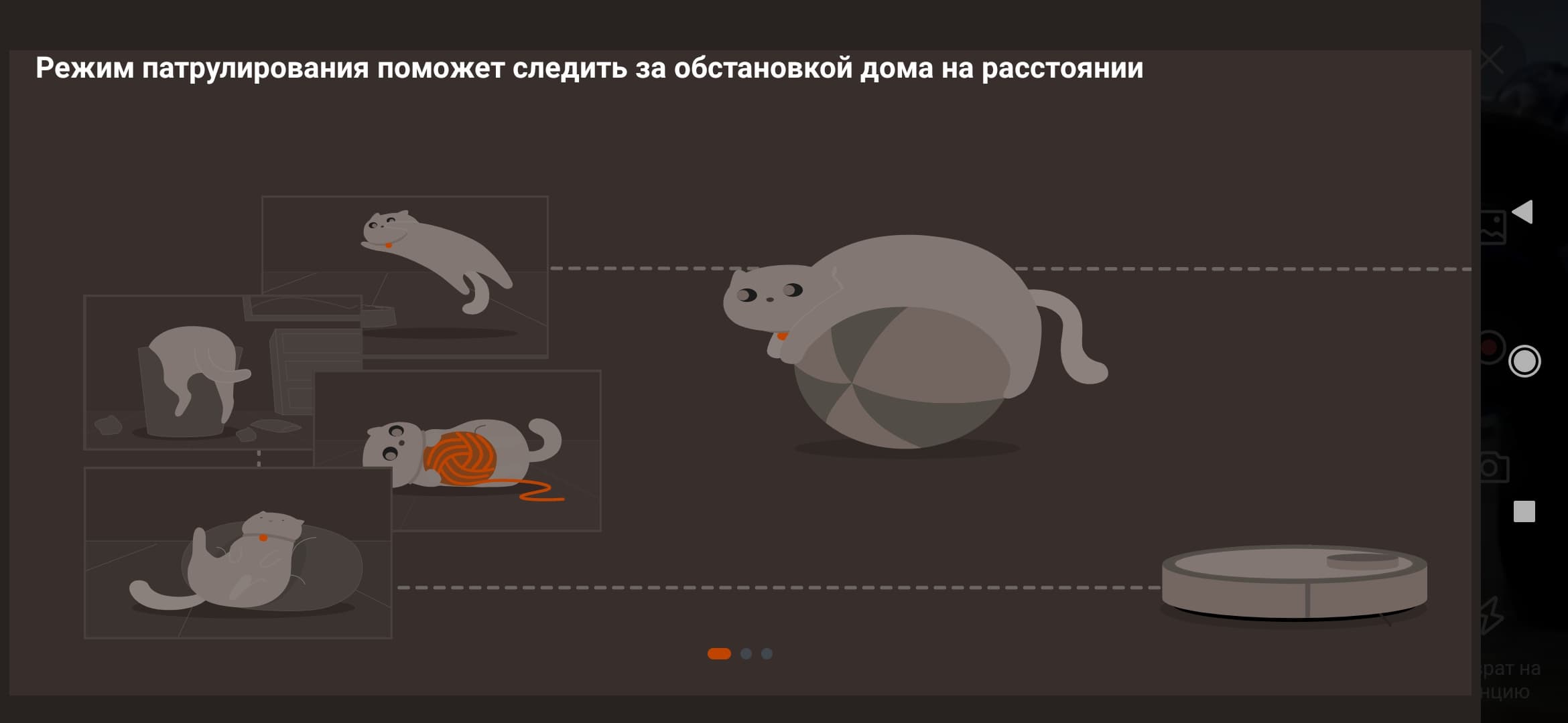 Теперь скажем пару слов про видео. Фронтальная камера позволяет нам наблюдать за квартирой в режиме реального времени — во время уборки, при ручном управлении роботом, либо во время запланированного патрулирования территории.