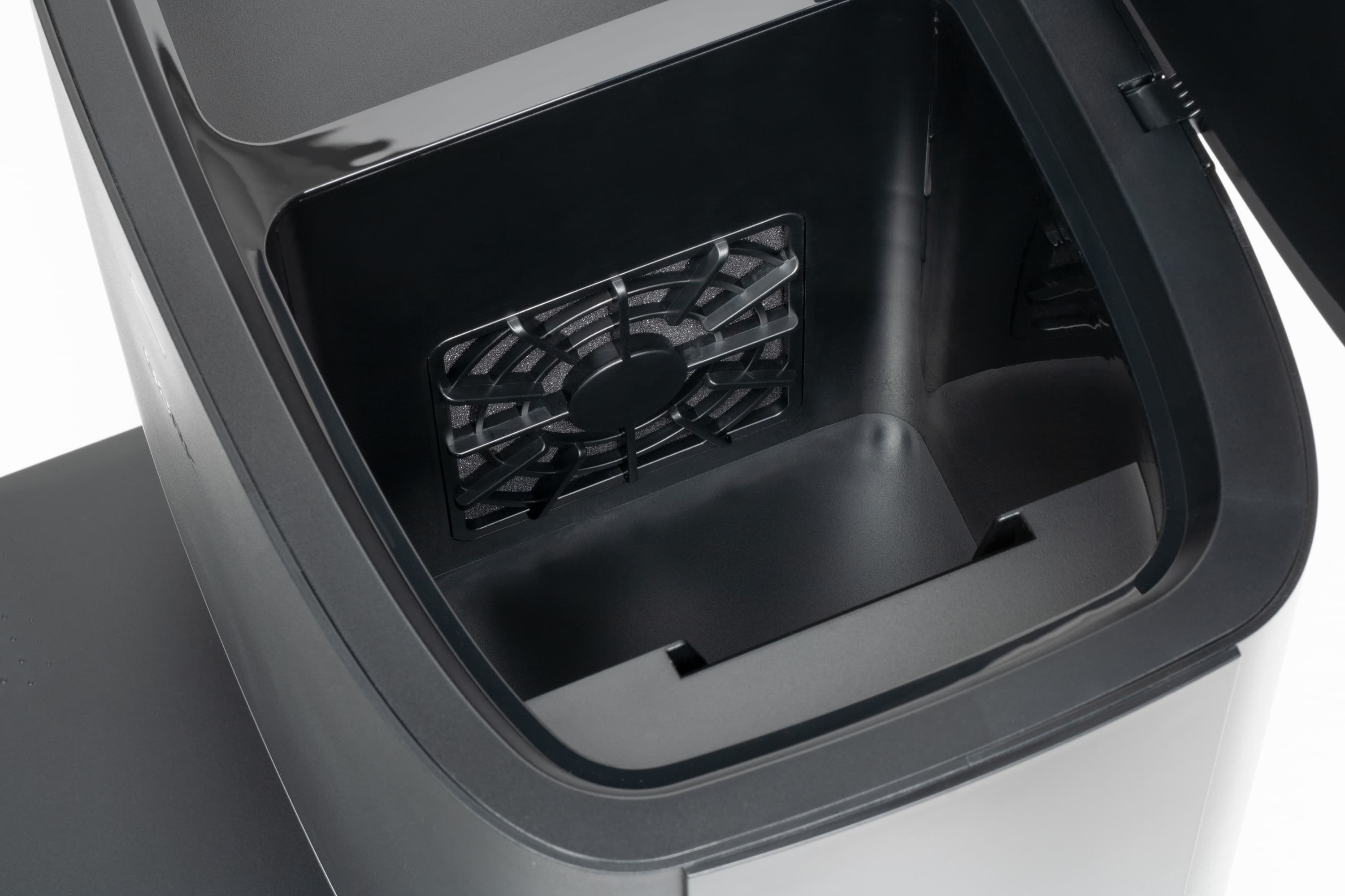 После нее идет фильтр из поролона, а затем — крышка-рамка с (внезапно!) вклеенным HEPA-фильтром. Решение, прямо скажем, неожиданное и противоречивое.